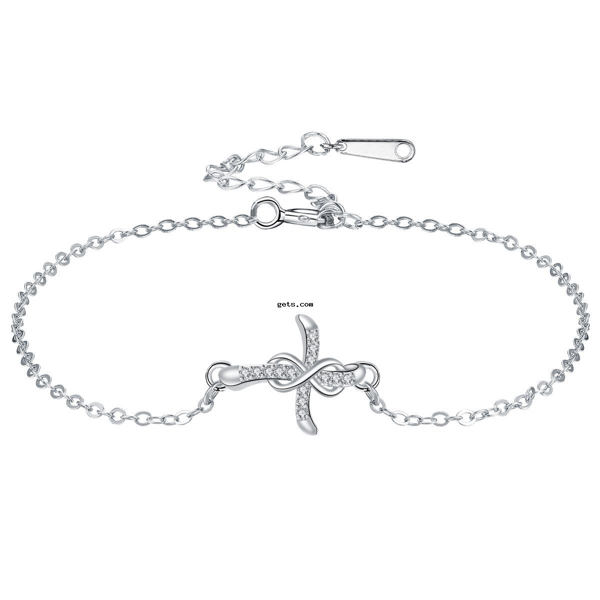 Cúbicos Circonia pulsera Latón Micro pavimenta, metal, con cadena de acero inoxidable, chapado en color de plata, ajustable & cadena oval & micro arcilla de zirconia cúbica & para mujer, 15x18mm, Vendido para aproximado 17 cm Sarta