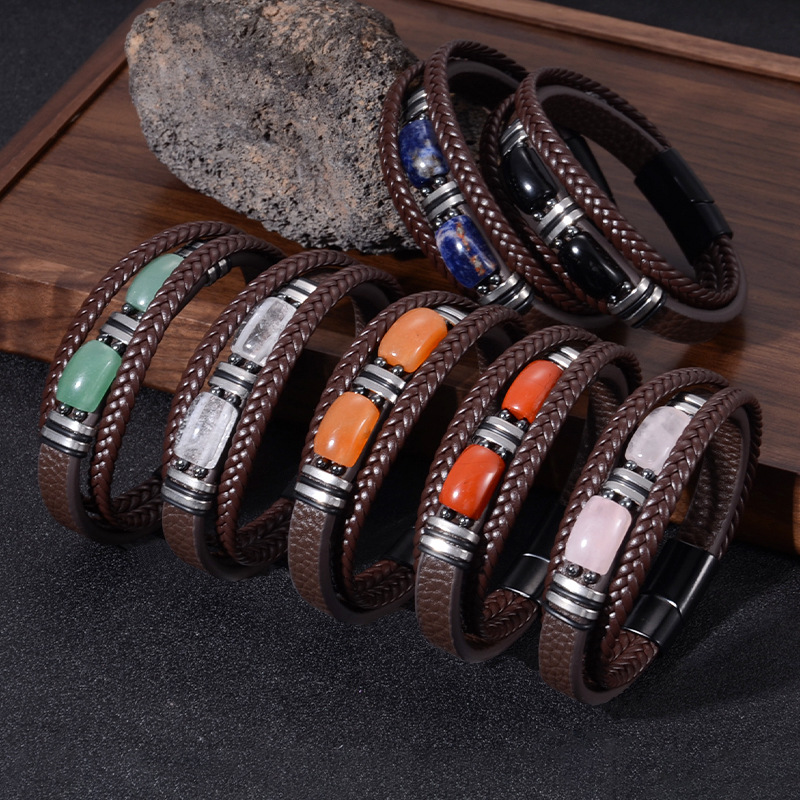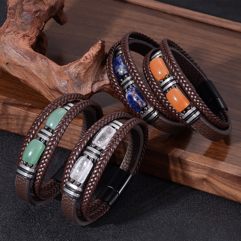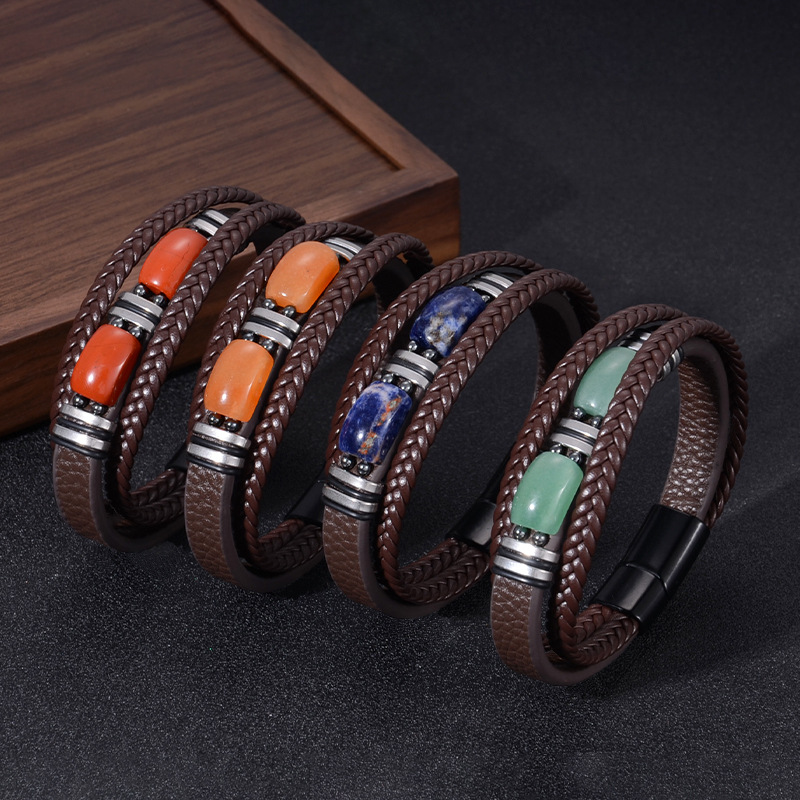 Cuero de PU Pulsera, con Piedras preciosas & acero inoxidable 304, diferentes materiales para la opción & unisexo & diverso tamaño para la opción, Vendido por UD