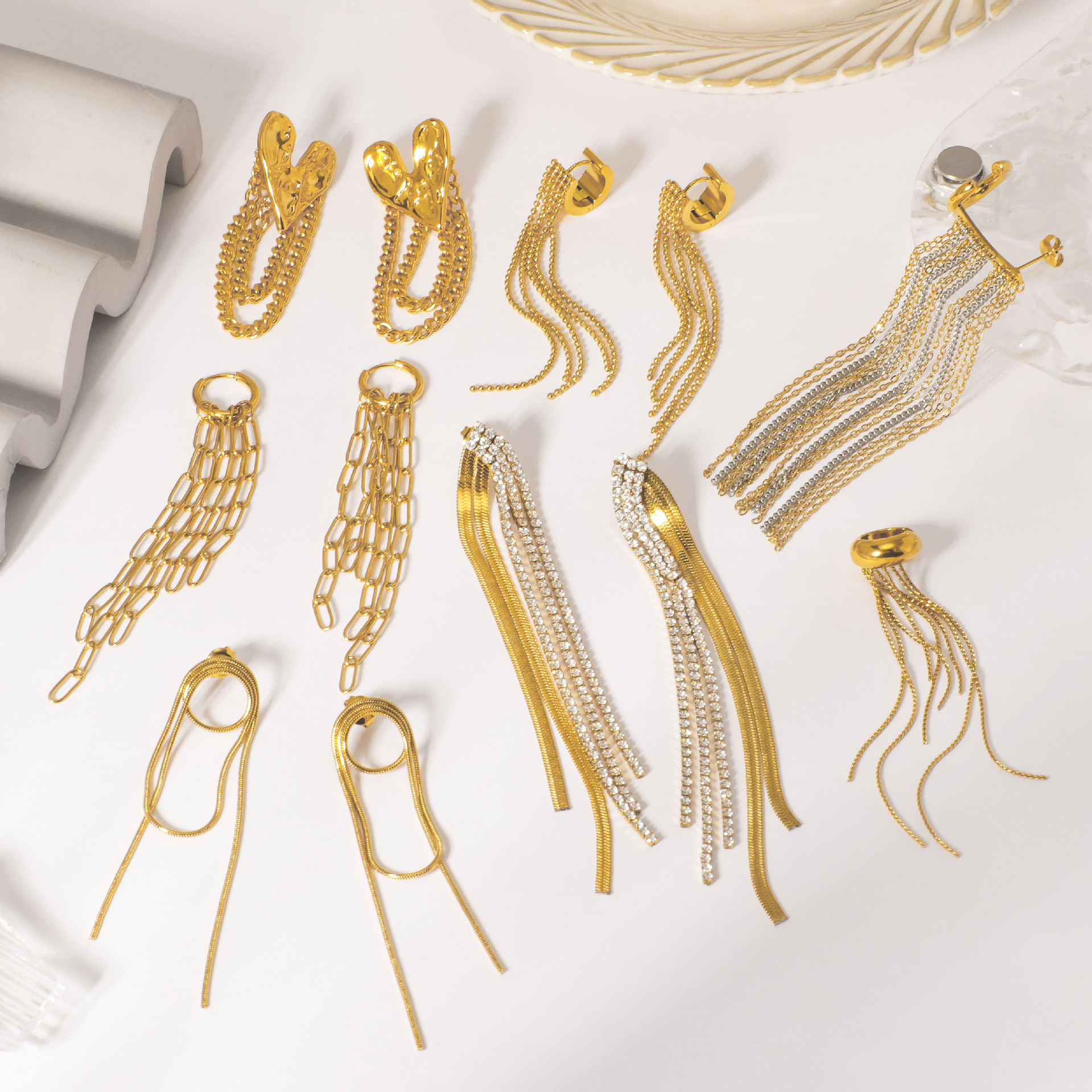 - Fringe pendientes de la manera, acero inoxidable 304, 18K chapado en oro