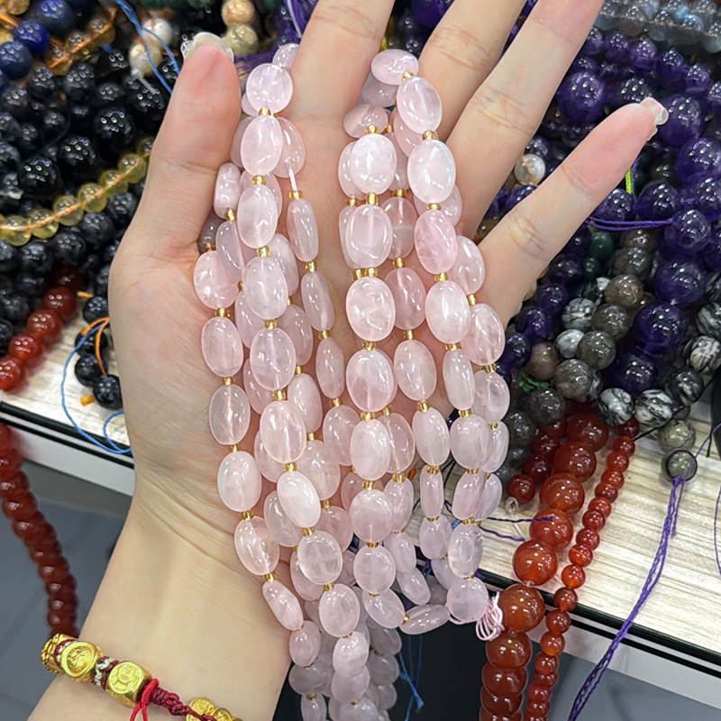 - Granos de cuarzo rosa natural, cuarzo rosado, Toroidal