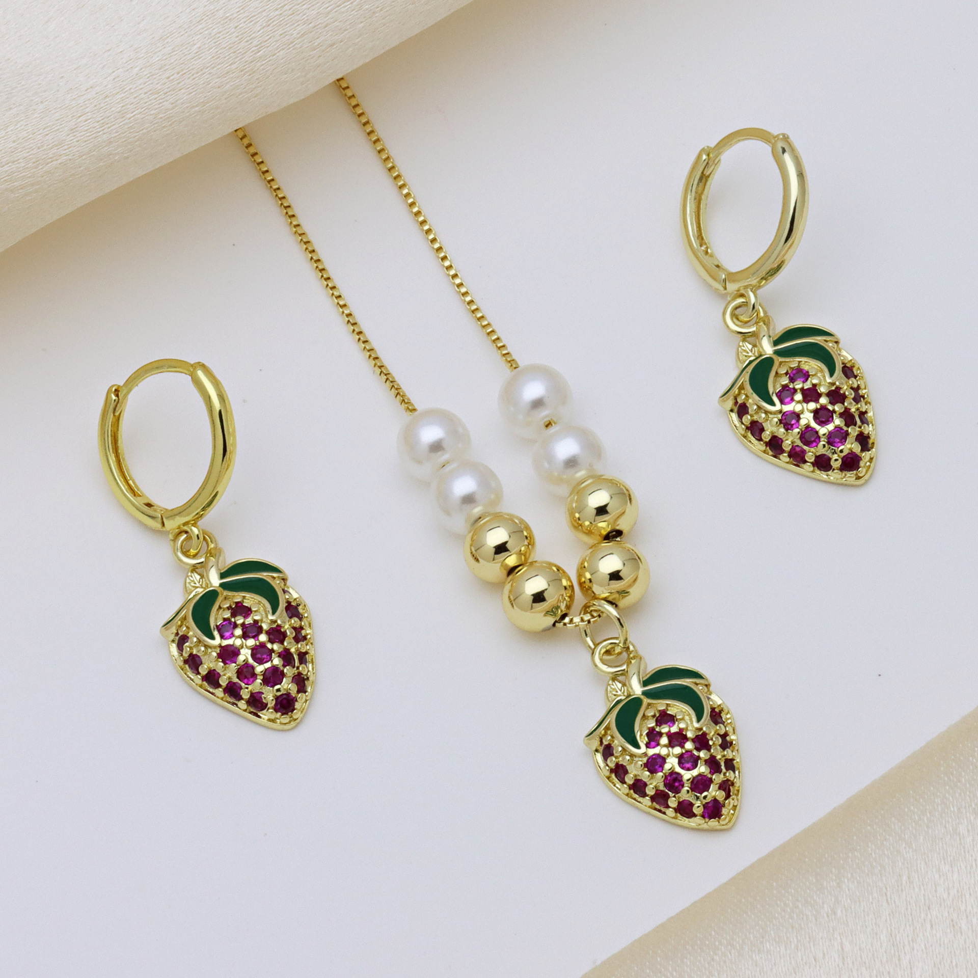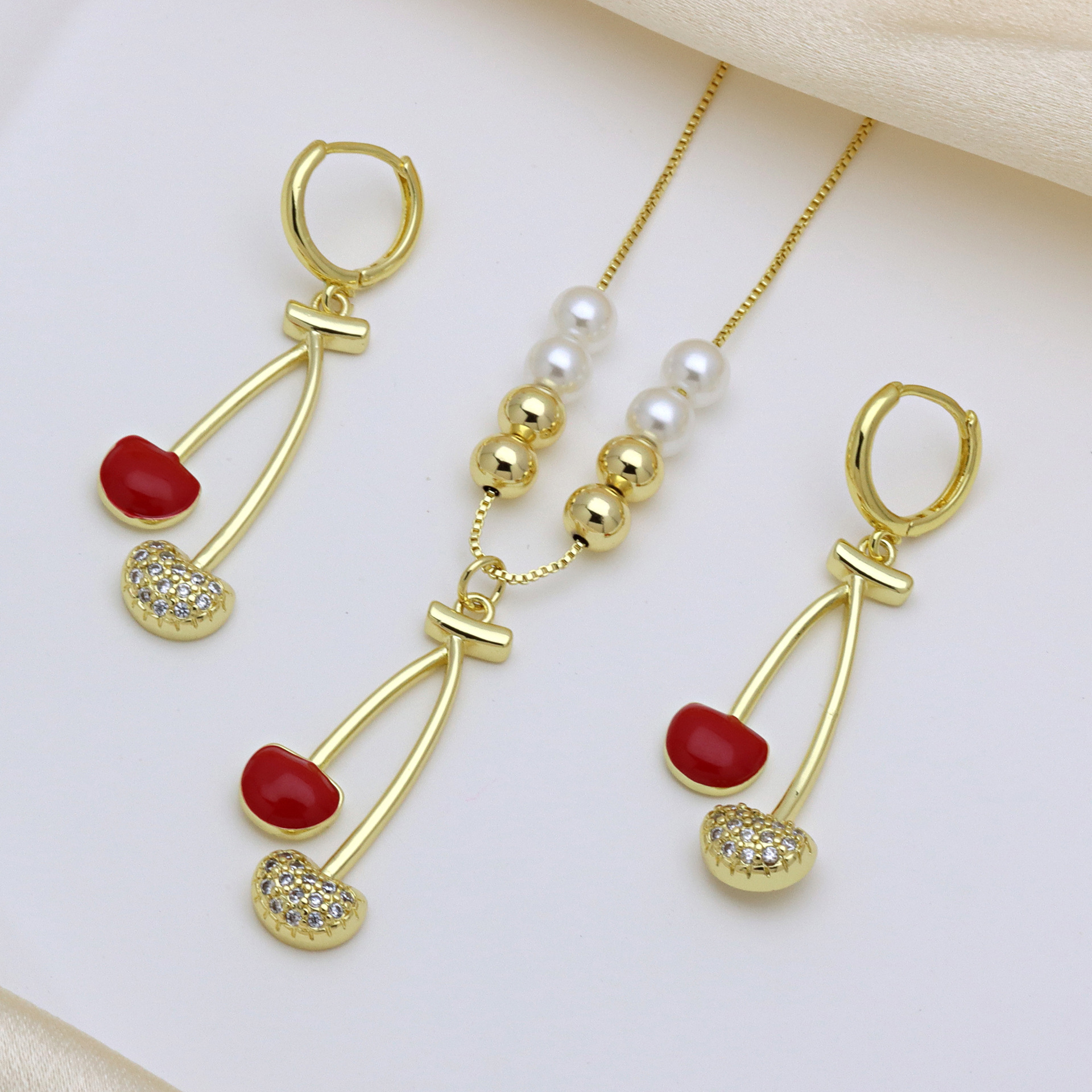 - Micro cúbicos Circonia allanar sistemas de la joyería de cobre amarillo, Pendiente de stud & collar, metal