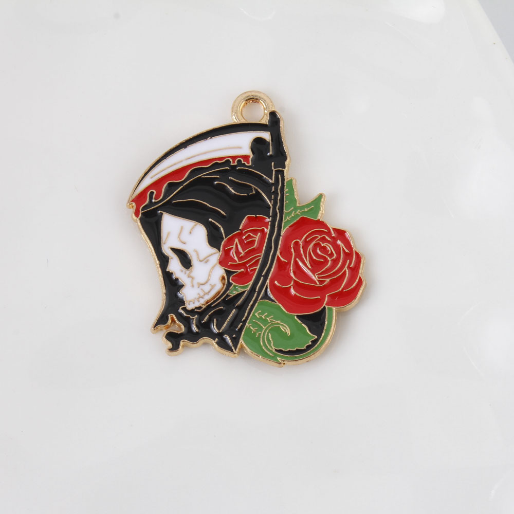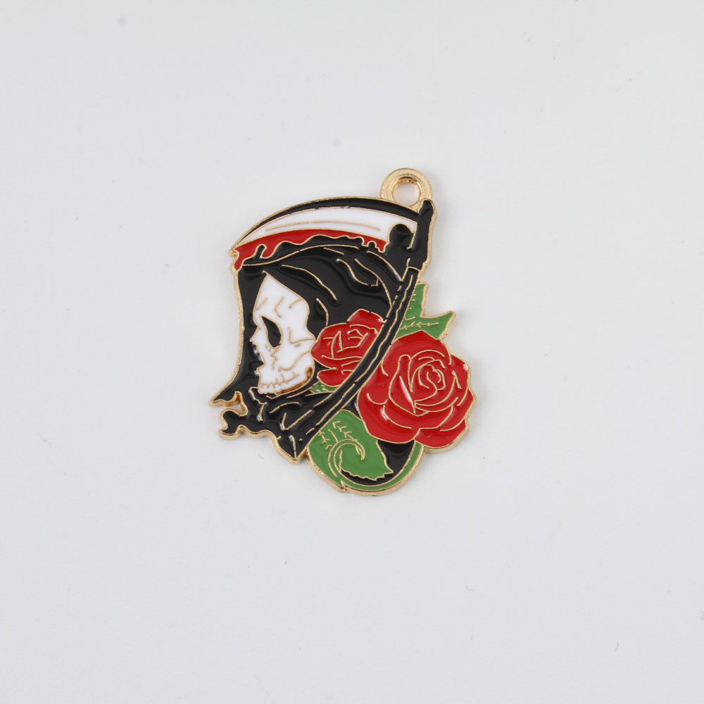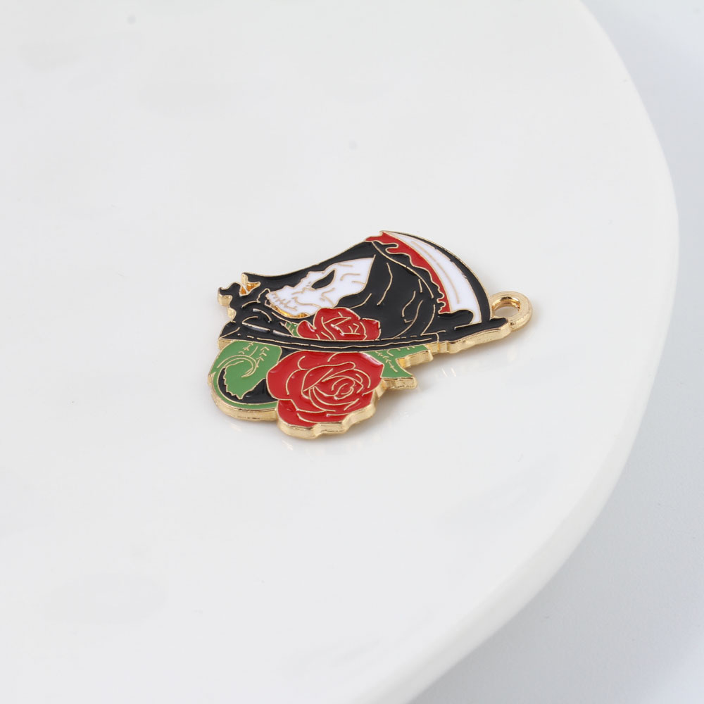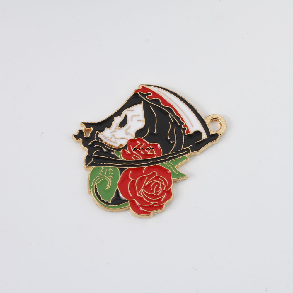 Moda colgante de Halloween, aleación de zinc, Calavera, chapado en color dorado, Diseño de Halloween & Bricolaje & esmalte, color mixto, 27.70x22x1.20mm, Vendido por UD