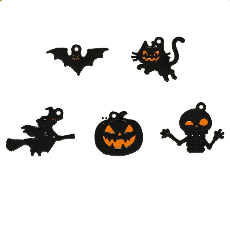 Moda colgante de Halloween, aleación de zinc, Diseño de Halloween & Bricolaje & diferentes estilos para la opción & esmalte, Negro, 10PCs/Bolsa, Vendido por Bolsa