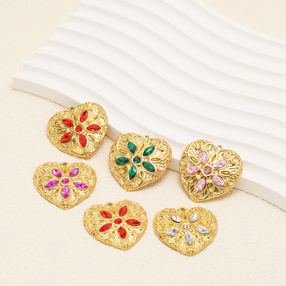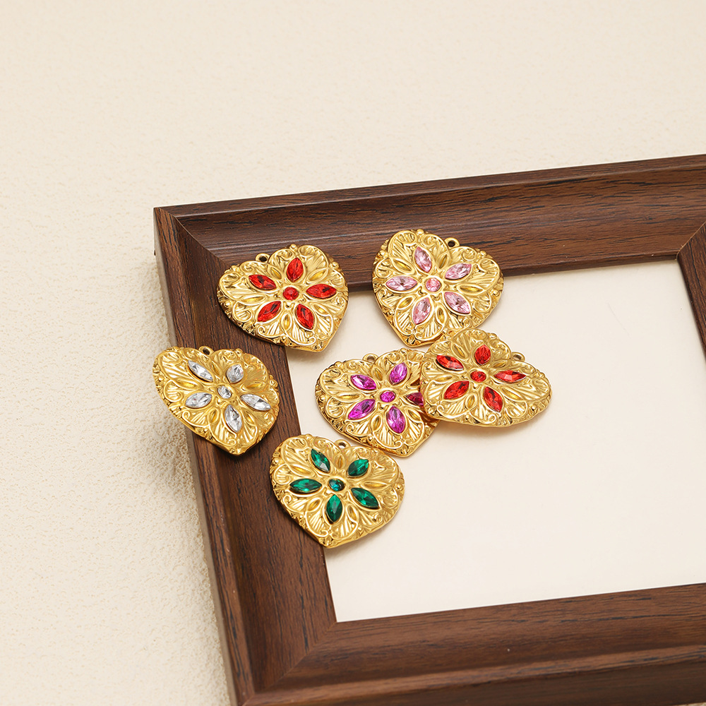 Pendientes Corazón de acero inoxidable, acero inoxidable 304, chapado en color dorado, Bricolaje & con diamantes de imitación, más colores para la opción, 34x34mm, 3PCs/Bolsa, Vendido por Bolsa