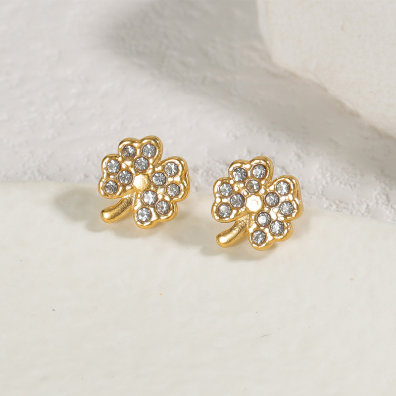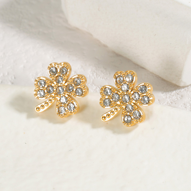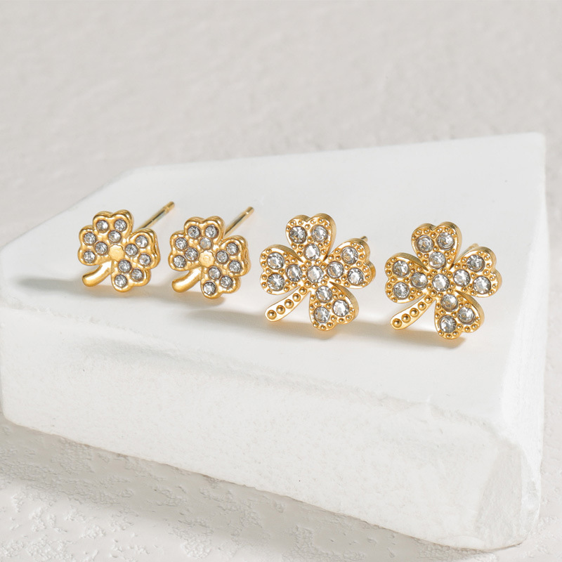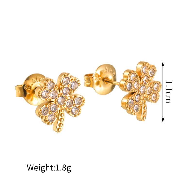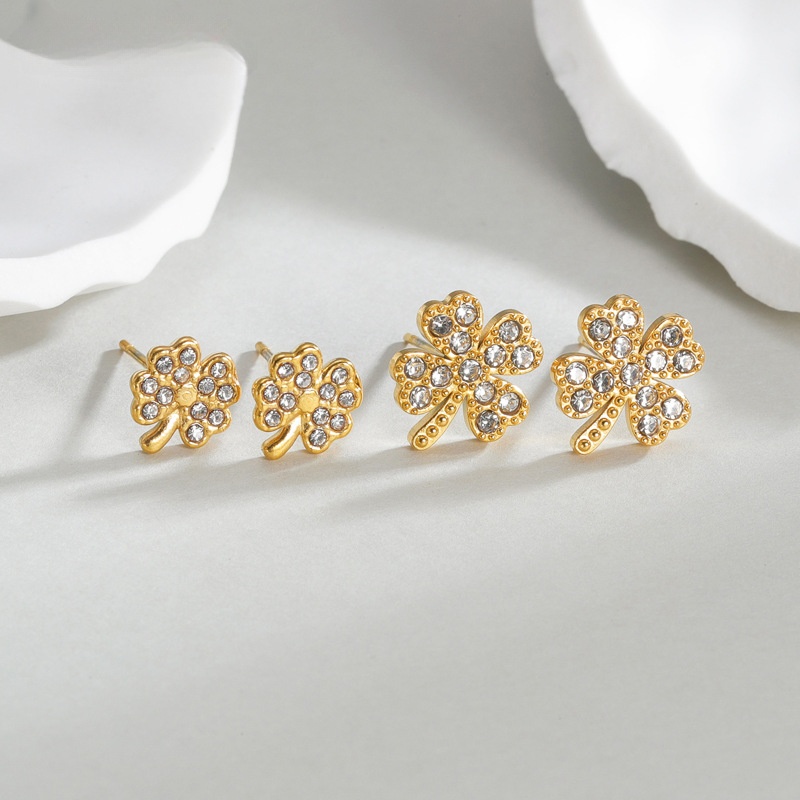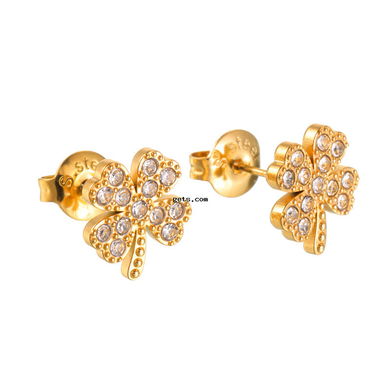 Pendientes de Acero Inoxidable, acero inoxidable 304, Trébol de cuatro hojas, chapado, diverso tamaño para la opción & para mujer & con diamantes de imitación, dorado, Vendido por Par