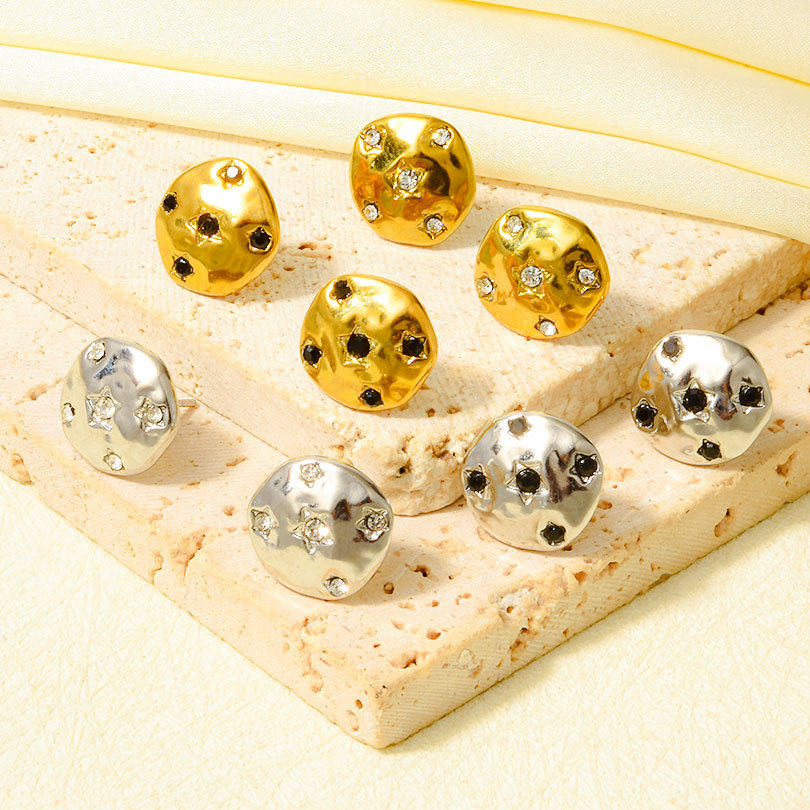Pendientes de Acero Inoxidable, acero inoxidable 304, Esférico, chapado, Joyería & con diamantes de imitación, más colores para la opción, 13x12mm, Vendido por Par