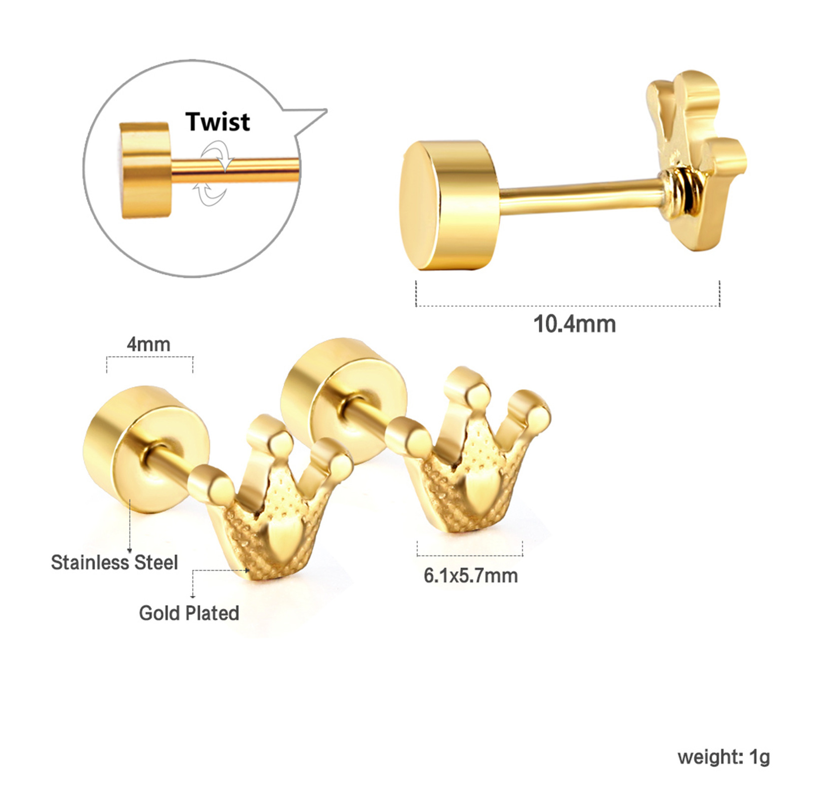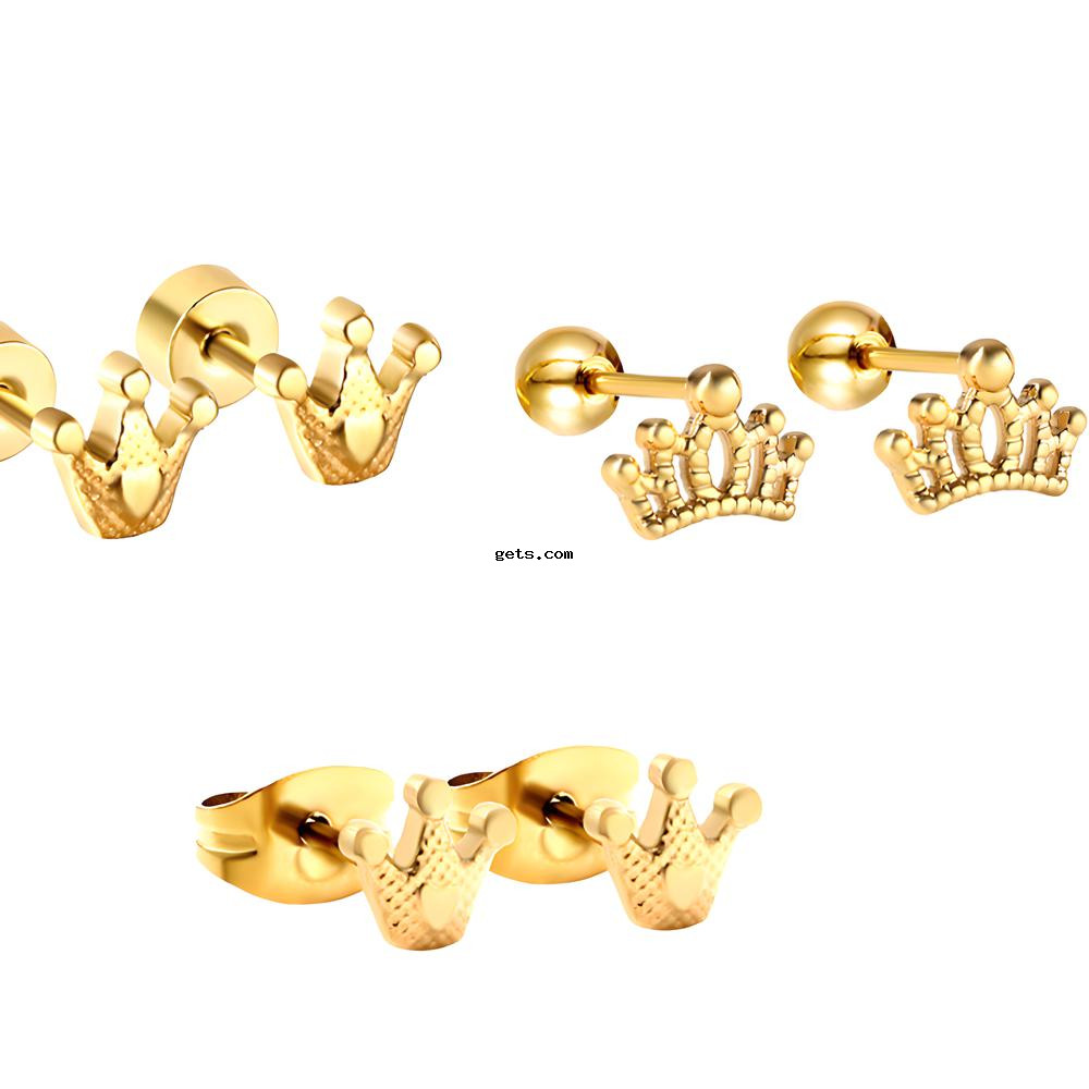 Plug Crown stud earrings EA624401SPlug Crown stud earrings EA624401GSteel ball plug Crown ear studs EA624901SSteel ball plug Crown ear studs EA624901GCrown cut stud earrings EA137701SCrown cut stud earrings EA137701G