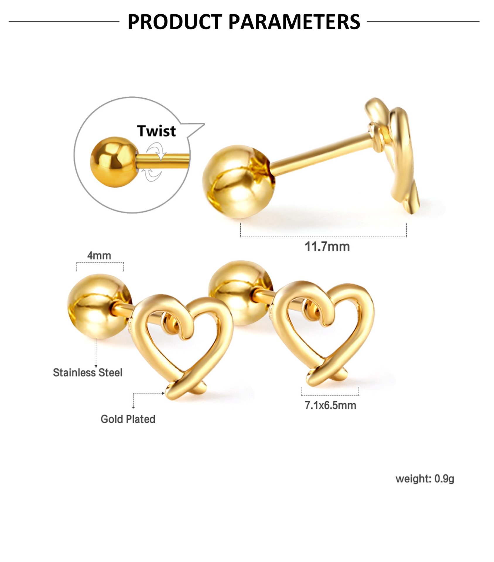 Pendientes de Acero Inoxidable, acero inoxidable 304, Corazón