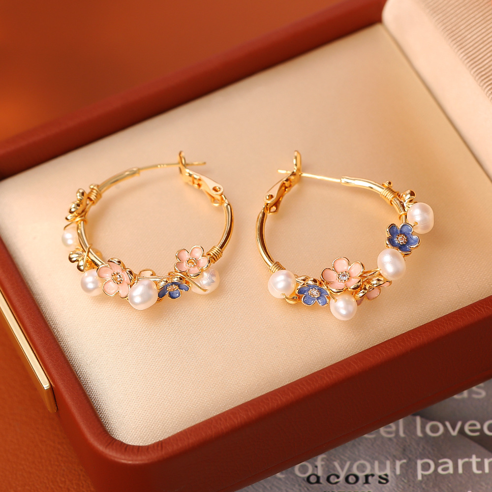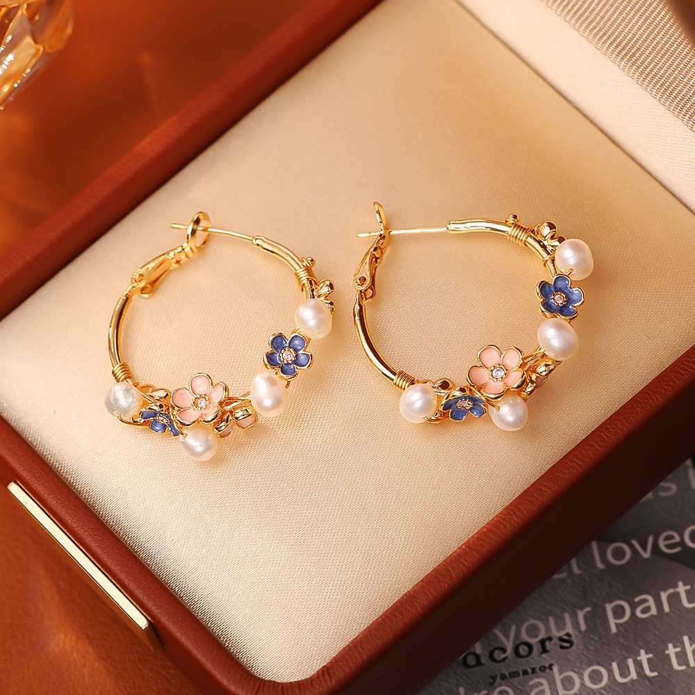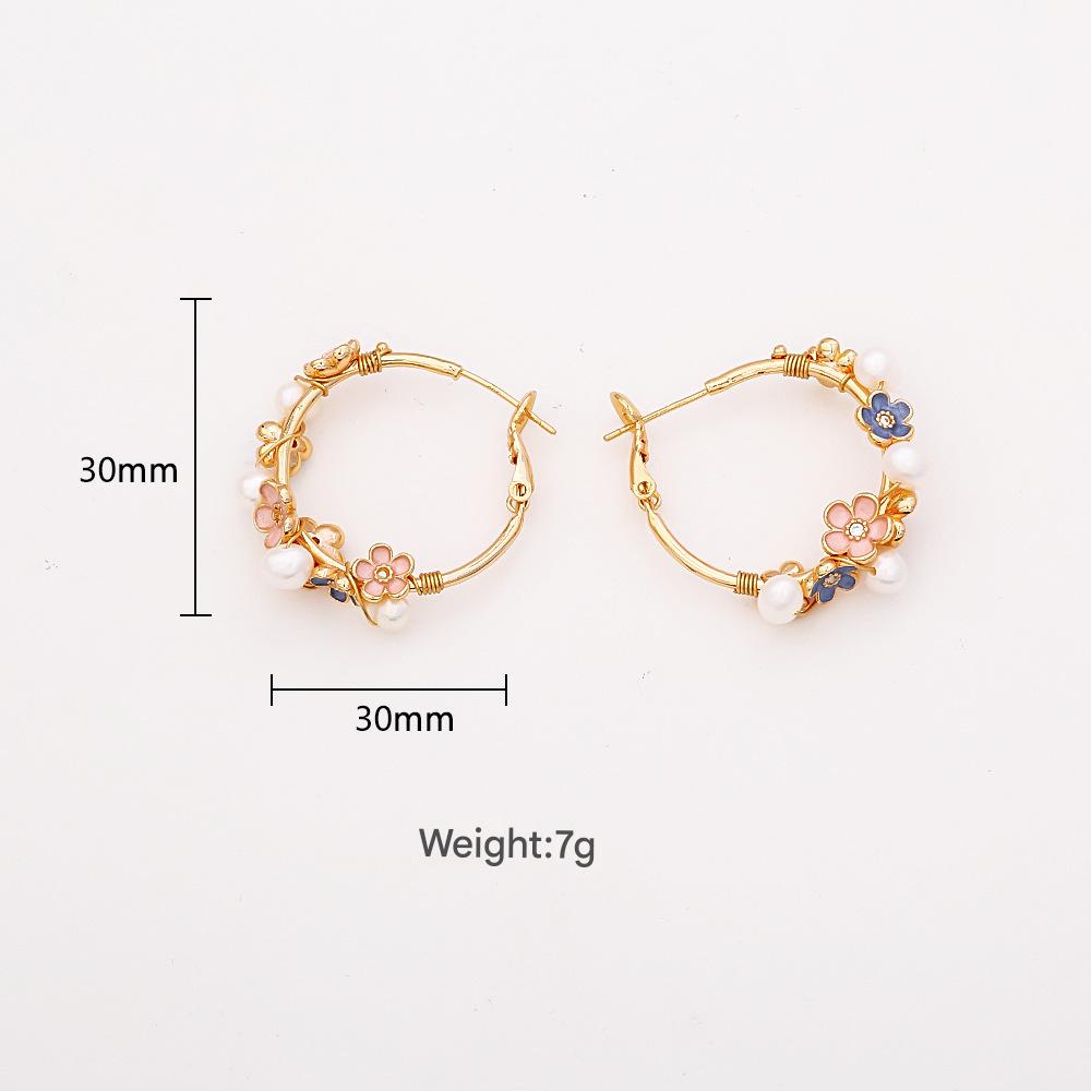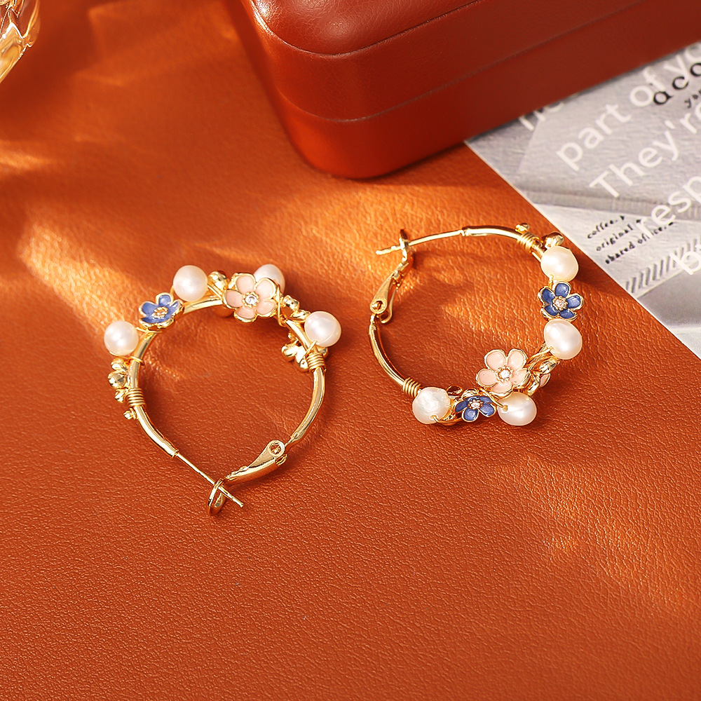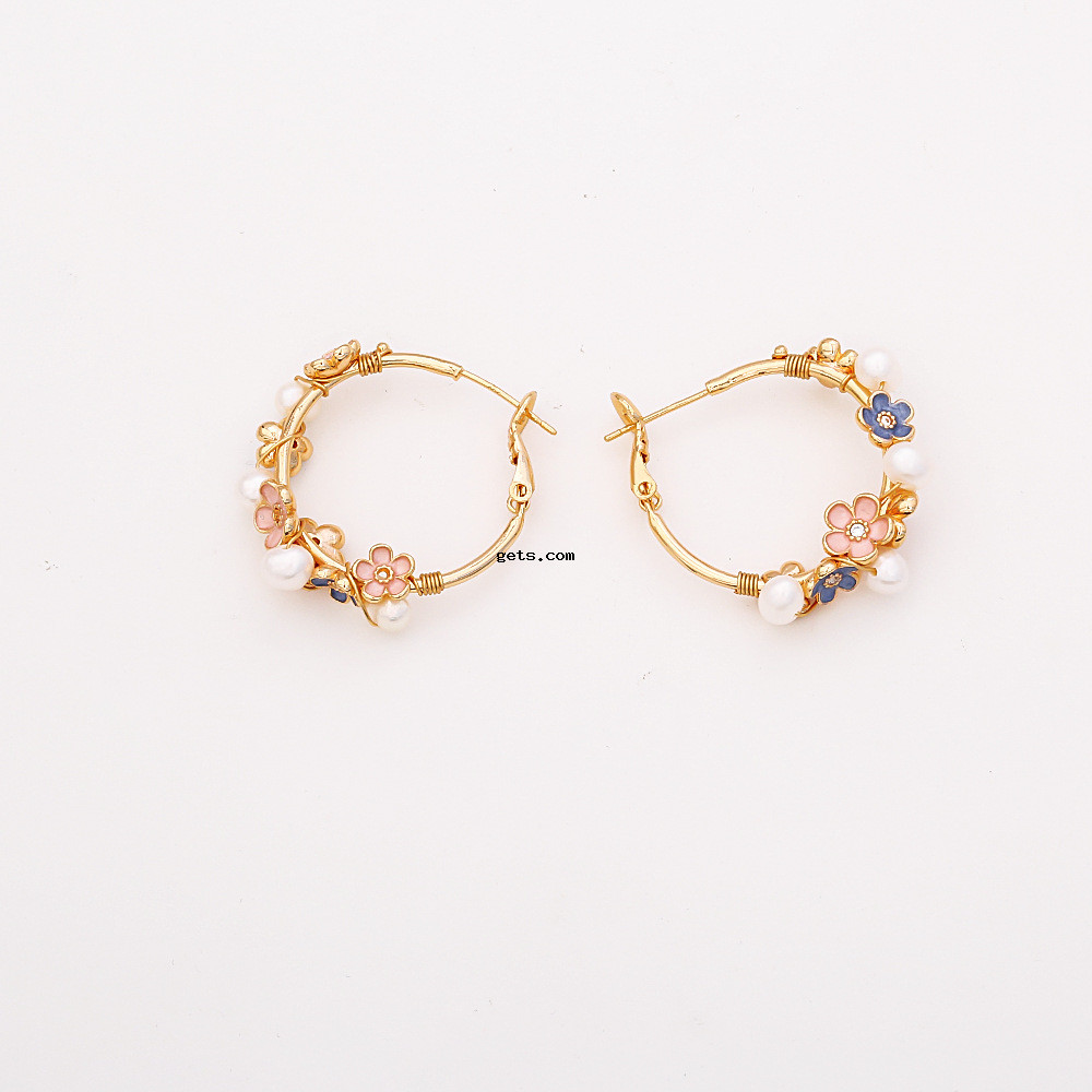 Pendientes de Perlas de Freshwater, metal, con Perlas cultivadas de agua dulce, Flor, chapado en oro real, Joyería & para mujer & esmalte, Vendido por Par