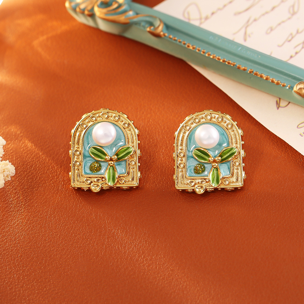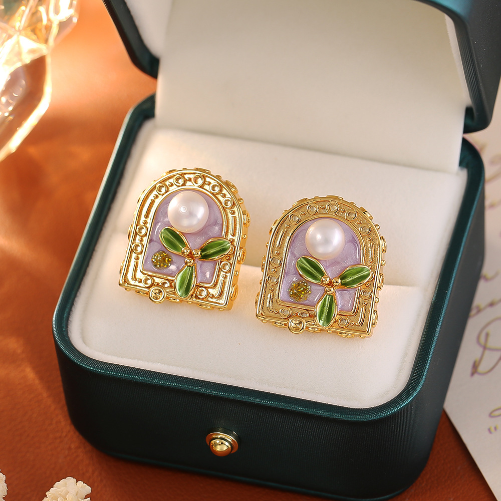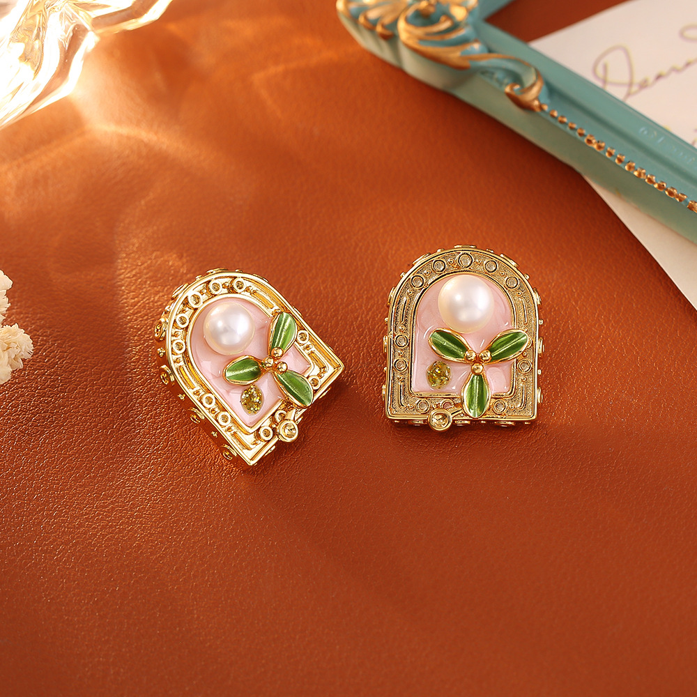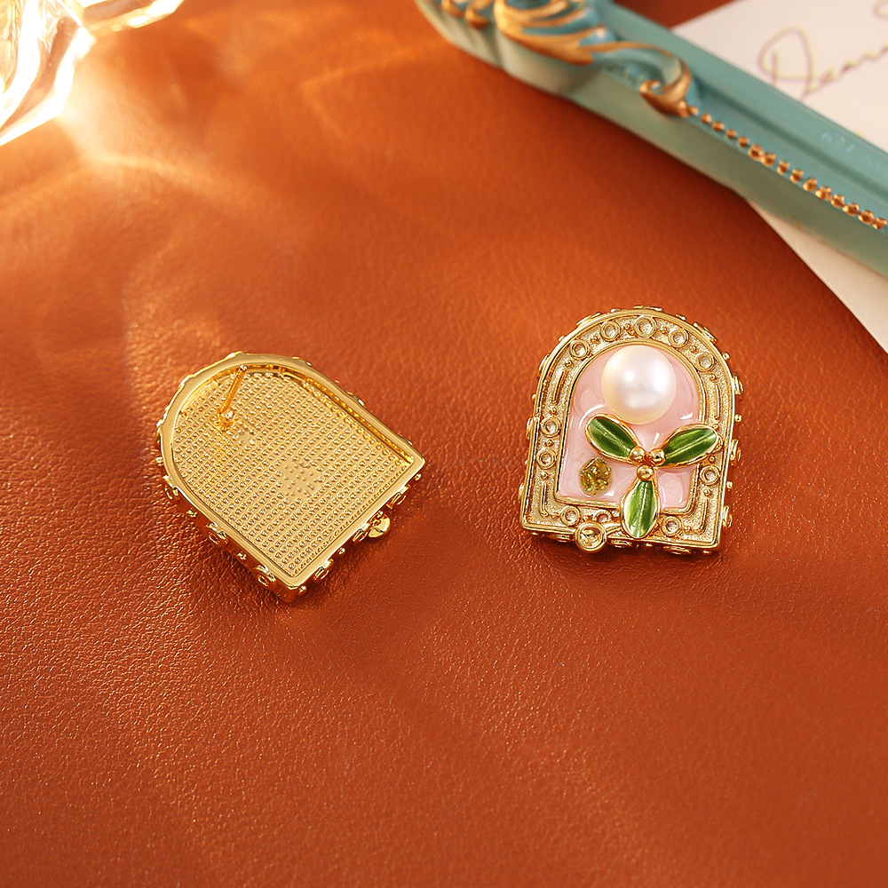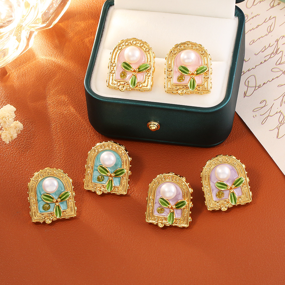 Pendientes de Perlas de Freshwater, metal, con Perlas cultivadas de agua dulce, chapado en oro real, Joyería & para mujer & esmalte, más colores para la opción, Vendido por Par