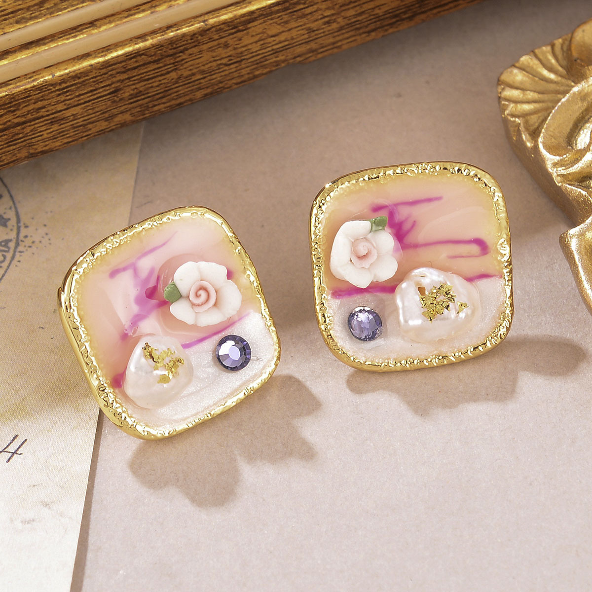 - Perlas cultivadas de agua dulce Arito, latón aguja de pendiente, Botón
