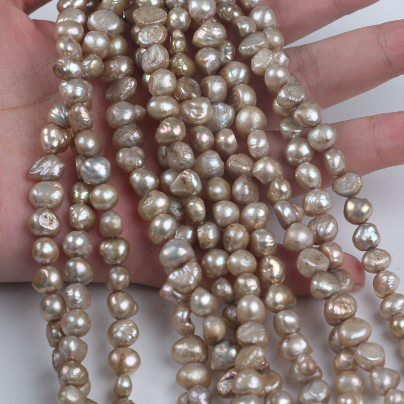 Perlas Keishi Cultivadas de Agua Dulce, Perlas cultivadas de agua dulce, Barroco, Bricolaje, Champaña, 6-7mm, Vendido para 18 cm Sarta