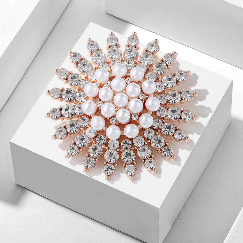 Plástico Broche Perla, aleación de zinc, con Perlas plásticas, Copo de Nieve, chapado, para mujer & con diamantes de imitación & hueco, más colores para la opción, Vendido por UD