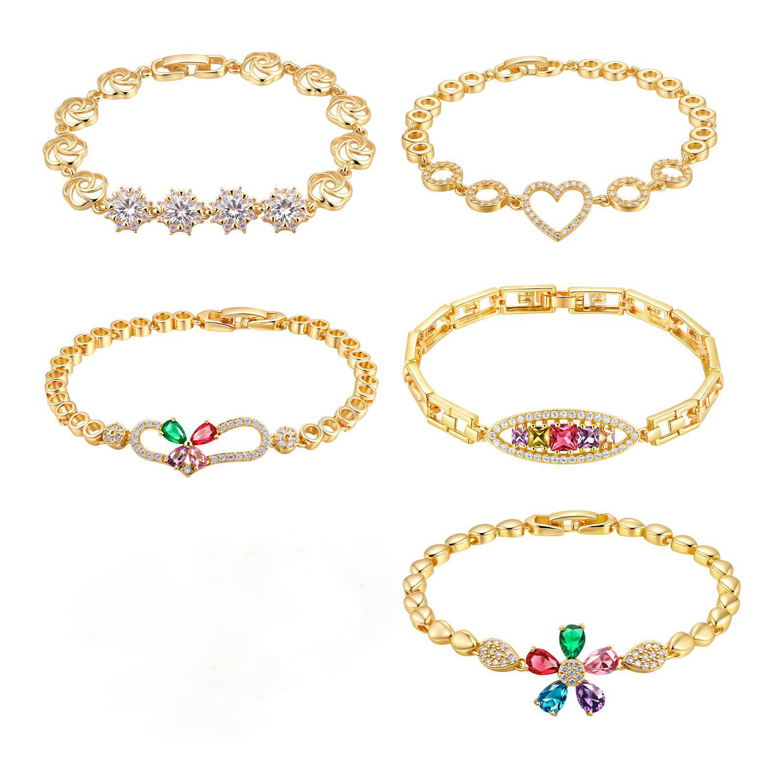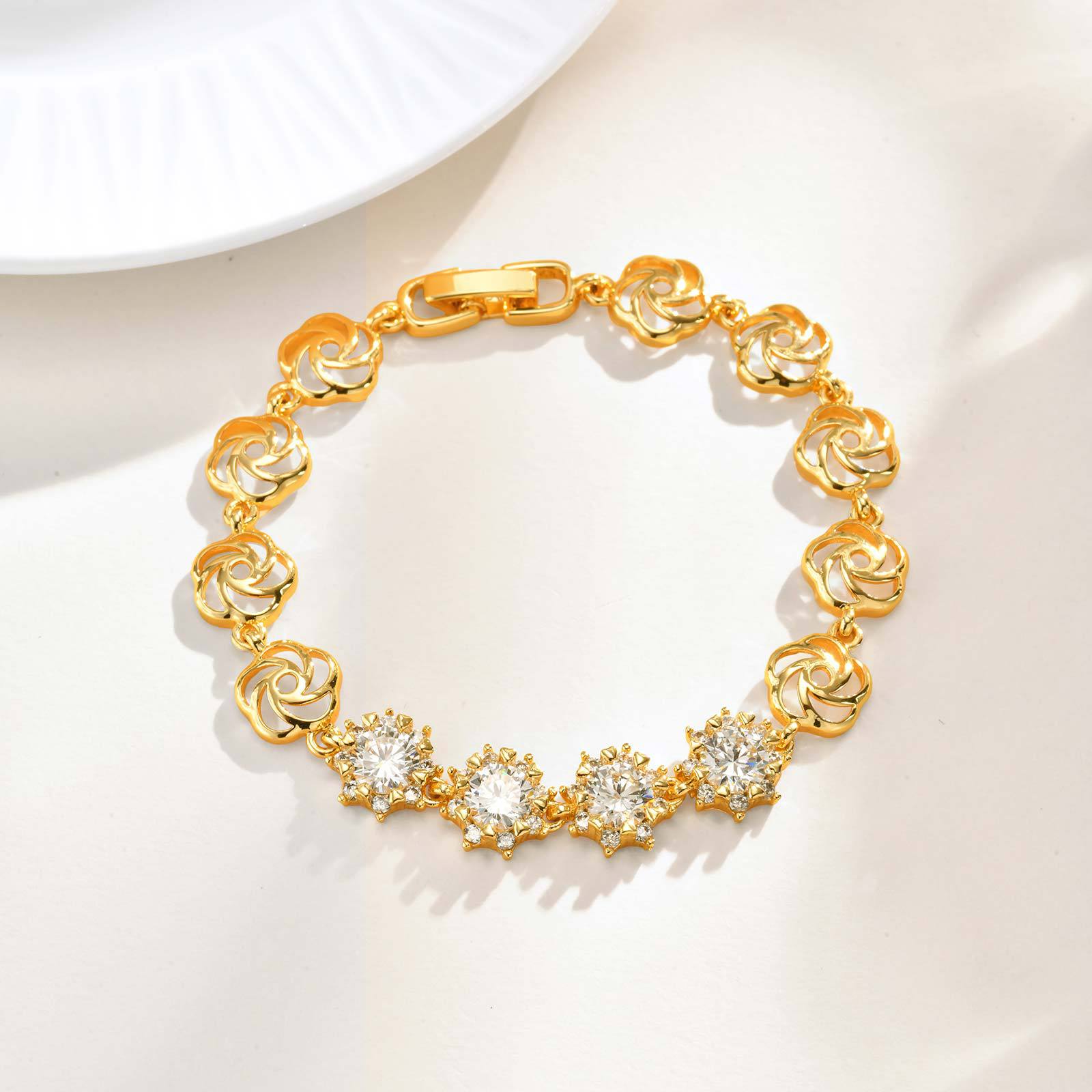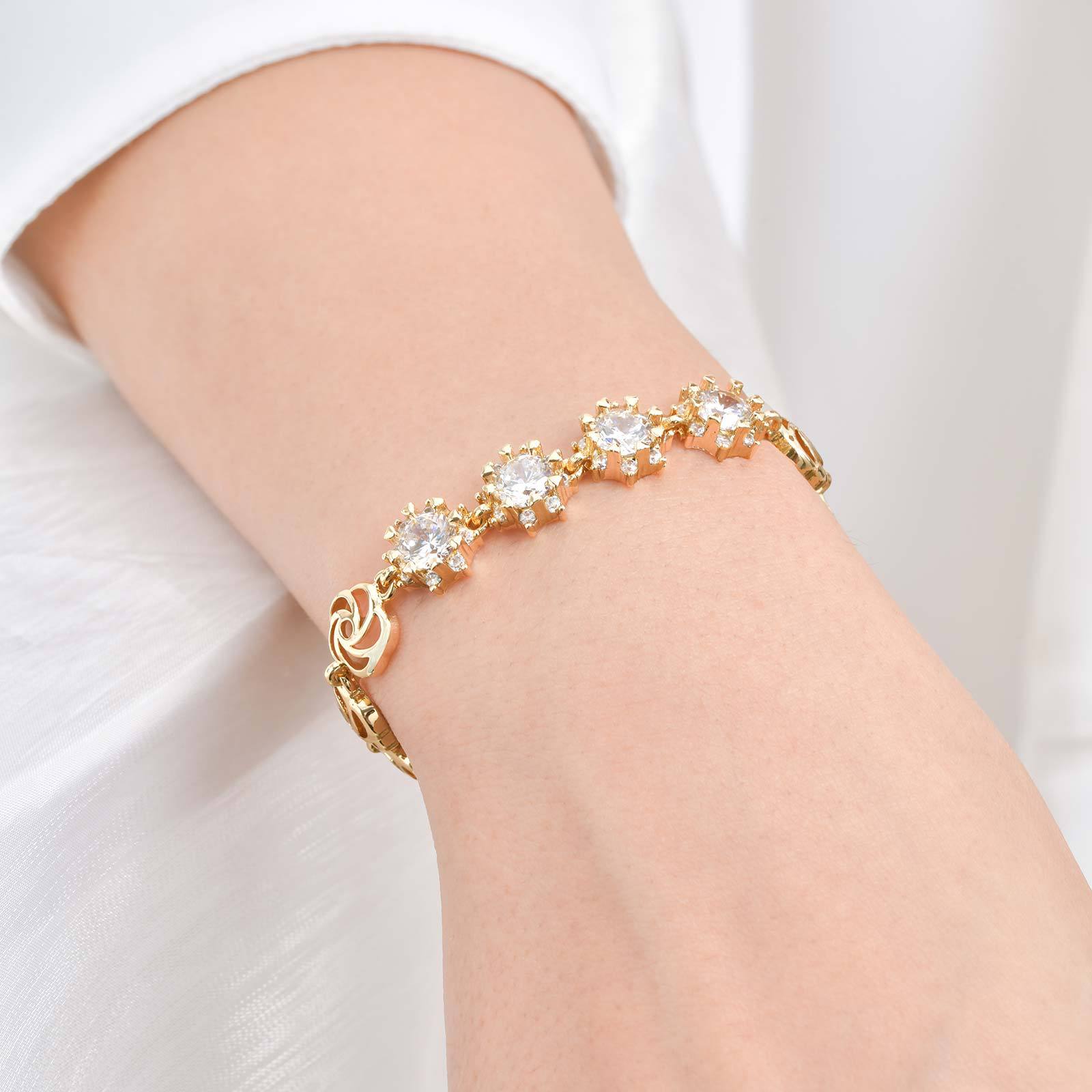 Pulseras de latón, metal, con cúbica circonia, chapado, Joyería & diferentes estilos para la opción & para mujer, dorado, Vendido por UD