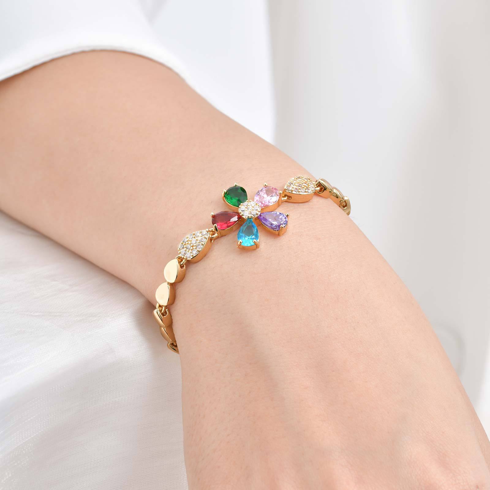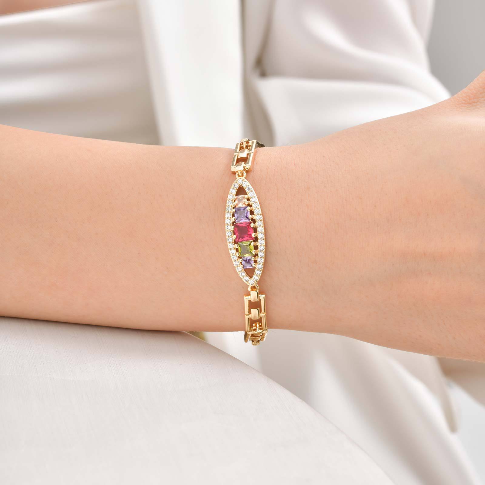 metal Brazalete, chapado en oro real, Ajustable & micro arcilla de zirconia cúbica & para mujer, multicolor, 60mm, Vendido por UD