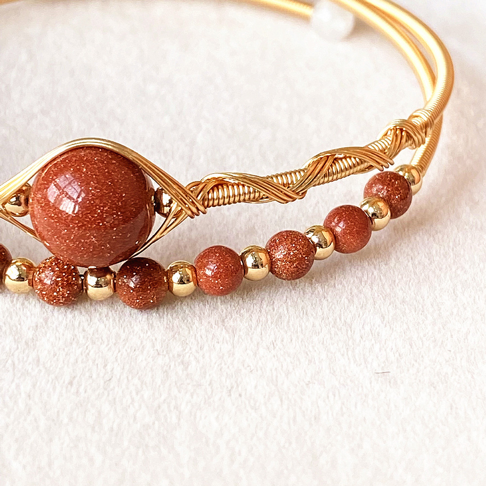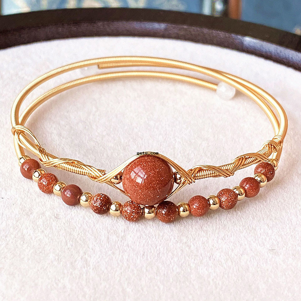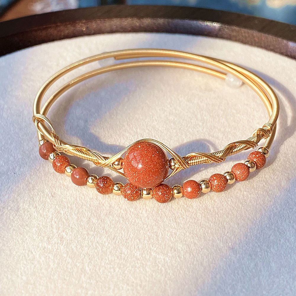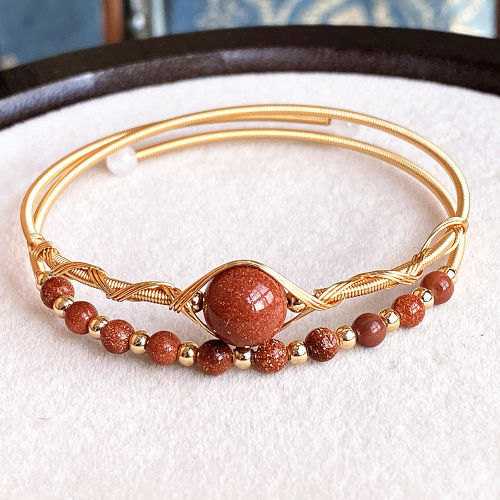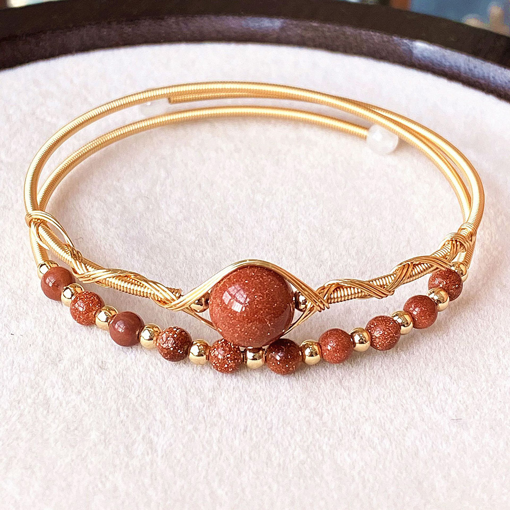Pulseras de piedras preciosas, metal, con arena dorada, 14K lleno de oro, Doble capa & Joyería & para mujer, Inner diameter :55mm, Vendido por UD