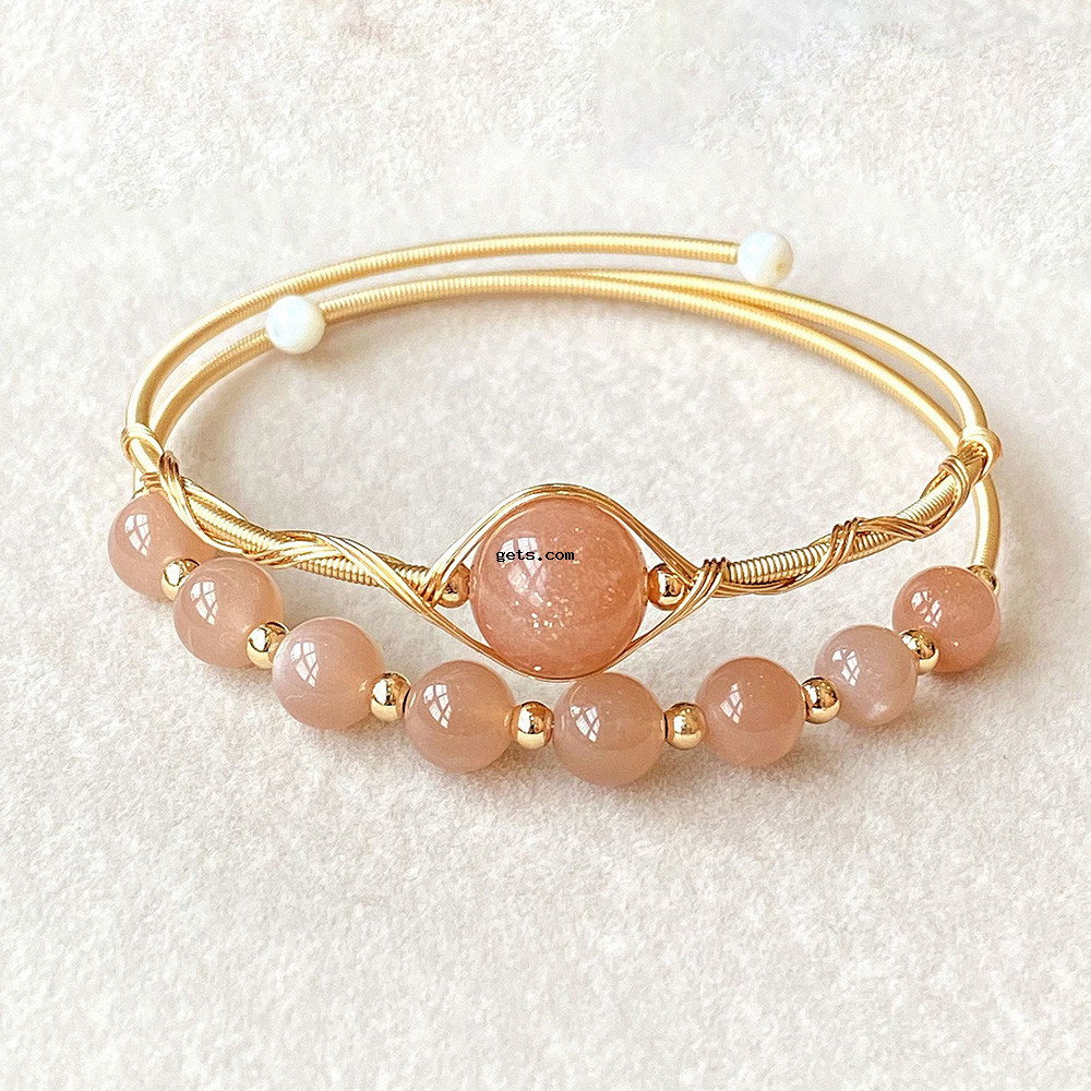 Pulseras de piedras preciosas, metal, con Piedra lunar, 14K lleno de oro, Doble capa & Joyería & para mujer, Inner diameter :55mm, Vendido por UD