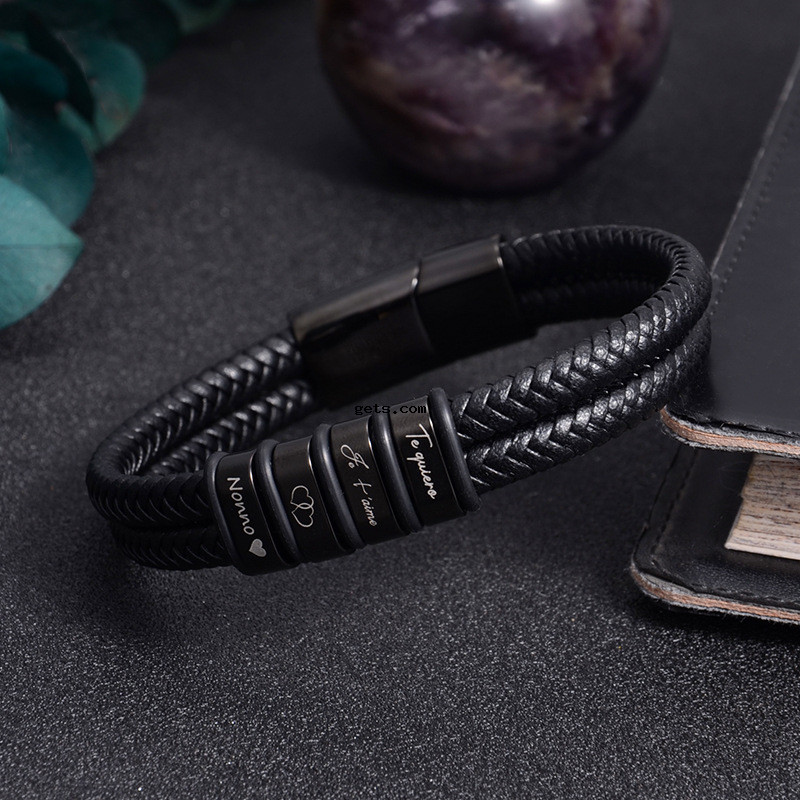 acero inoxidable 304 Pulsera, con Cuero de PU, Carta del alfabeto, chapado, diverso tamaño para la opción & para hombre, más colores para la opción, longitud:aproximado 8.5 Inch, Vendido por UD