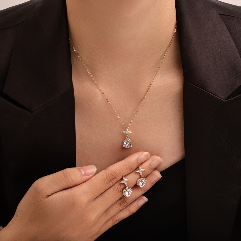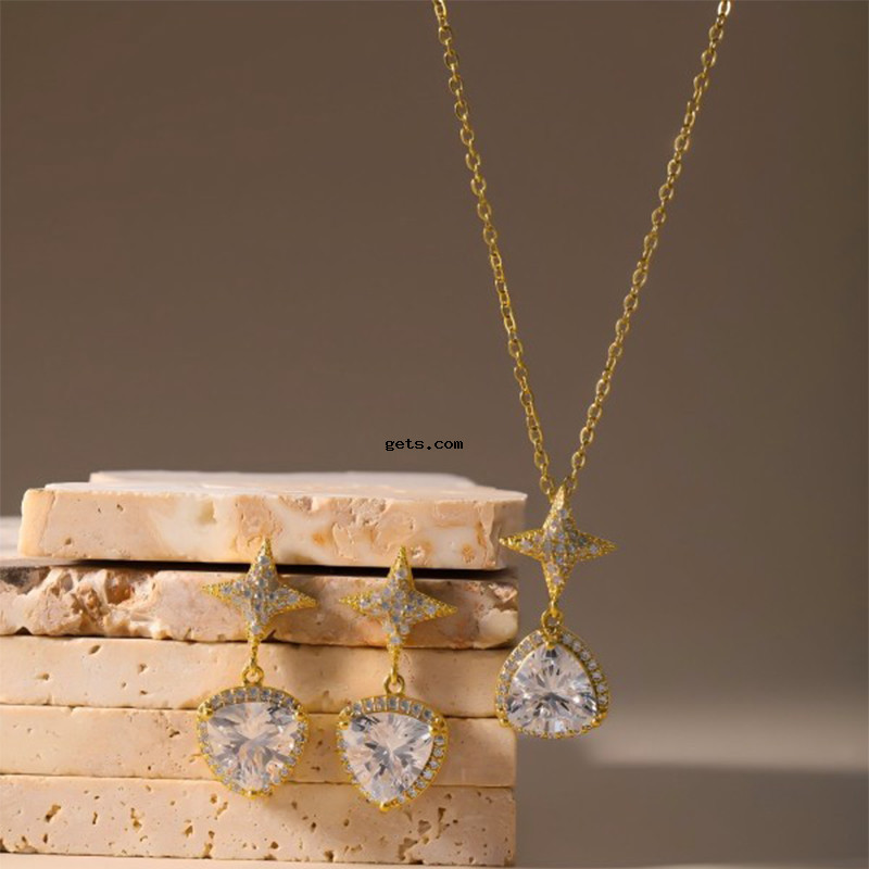metal Conjunto de joya, Pendiente de stud & collar, chapado, 2 piezas & para mujer & con diamantes de imitación, más colores para la opción, Vendido por Set