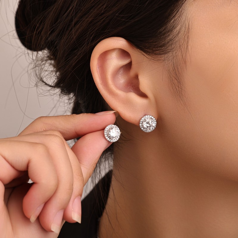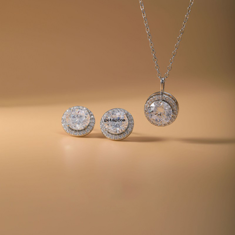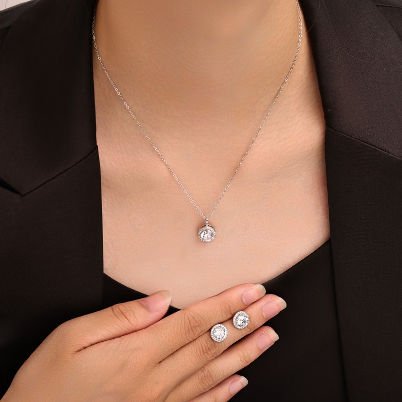 metal Conjunto de joya, Pendiente de stud & collar, Esférico, chapado, 2 piezas & para mujer & con diamantes de imitación, Vendido por Set