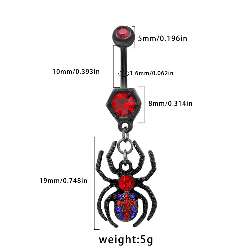 metal anillo de vientre, Araña, chapado, Diseño de Halloween & unisexo & con diamantes de imitación, más colores para la opción, Vendido por UD