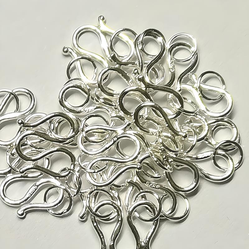 - 925 Fermoir crochet S en argent massif, argent sterling 925, Placage