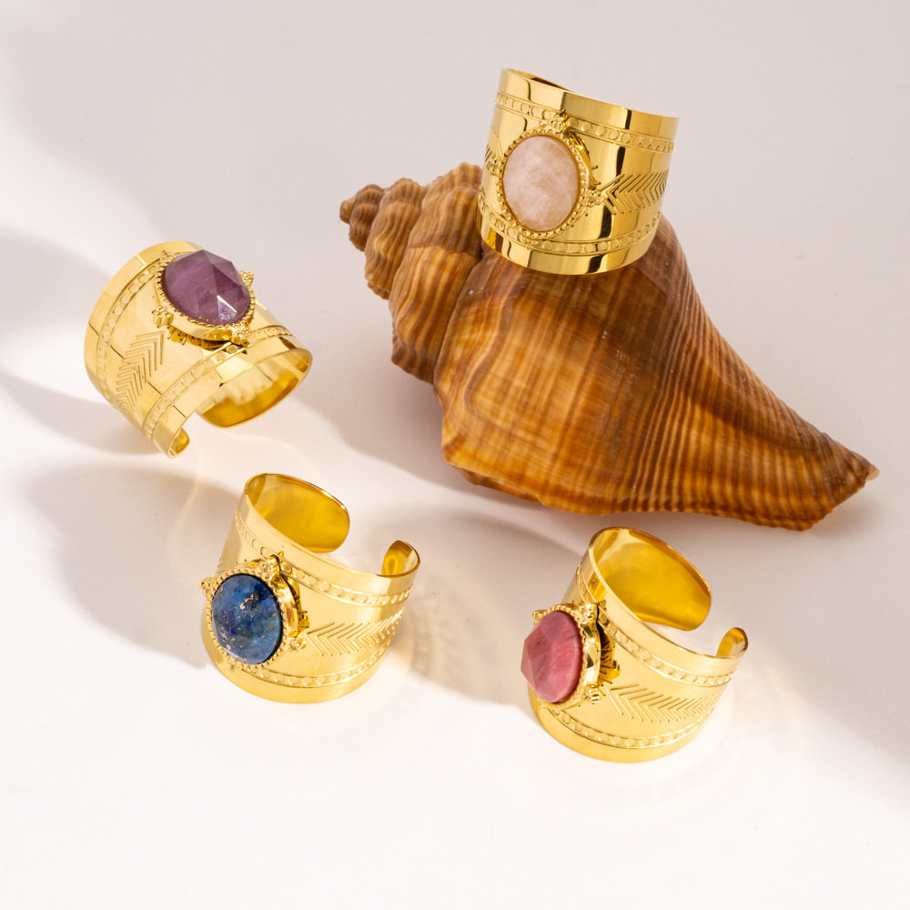 Acier inoxydable 304 Cuff Bague, avec pierre gemme, Placage de couleur d'or, différents matériaux pour le choix & pour femme, 10PC/sac, Vendu par sac