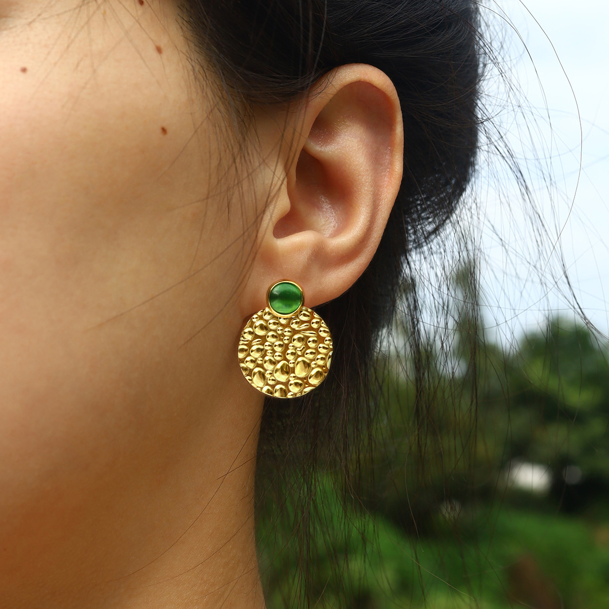 - Cats Eye boucle d'oreille, laiton, avec Oeil de chat