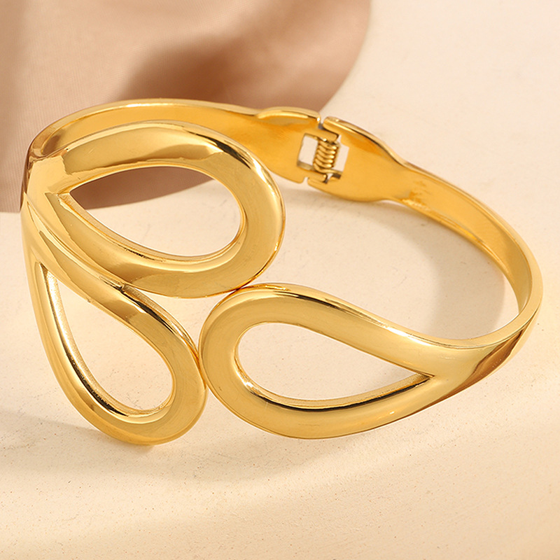 - Acier inoxydable 304 bracelet manchette, Placage de couleur d'or, pour femme & émail & avec strass & creux