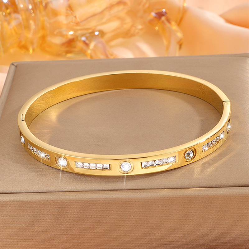 - Bracelet en acier inoxydable, Placage, pour femme & avec strass