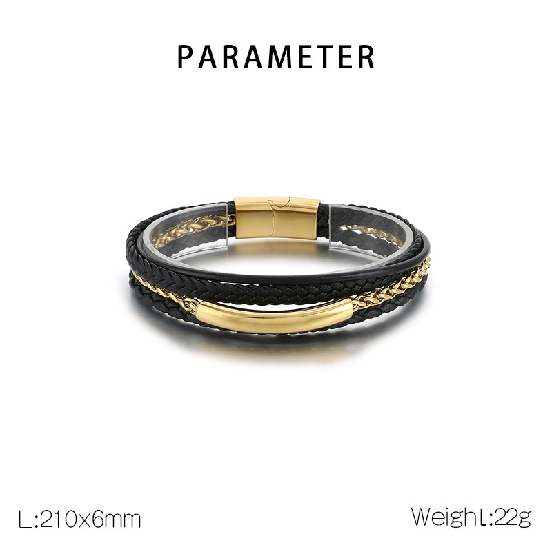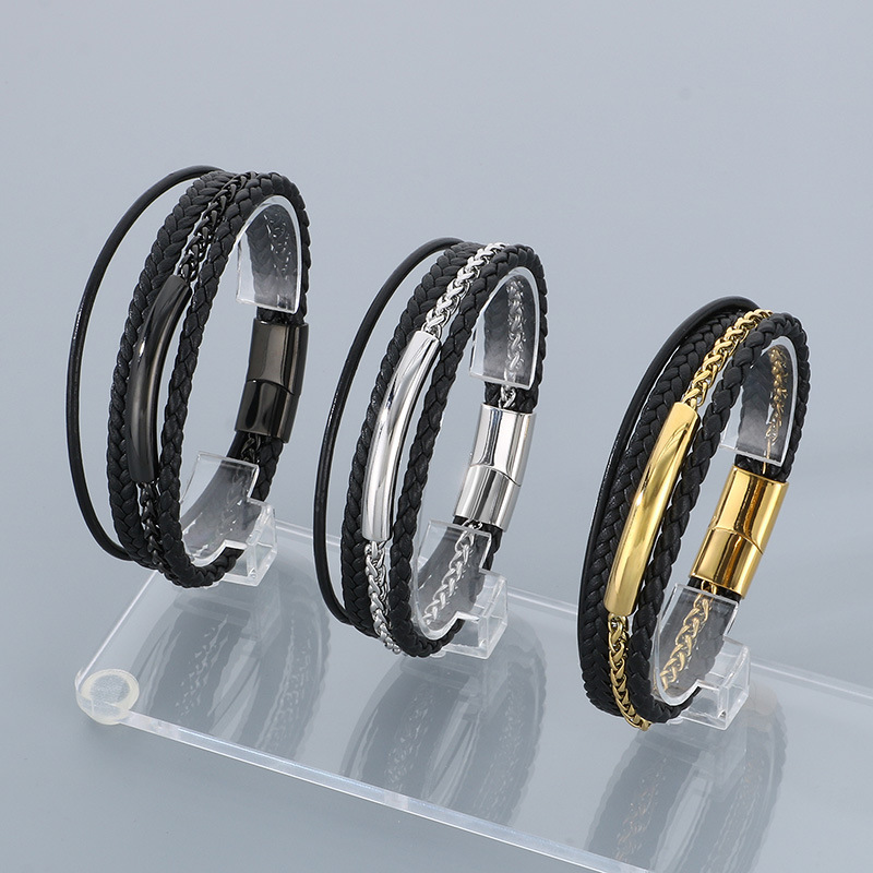 Acier inoxydable 304 bracelet, avec Microfibre PU, Placage, multicouche & pour homme, plus de couleurs à choisir, 210x6mm, Vendu par PC