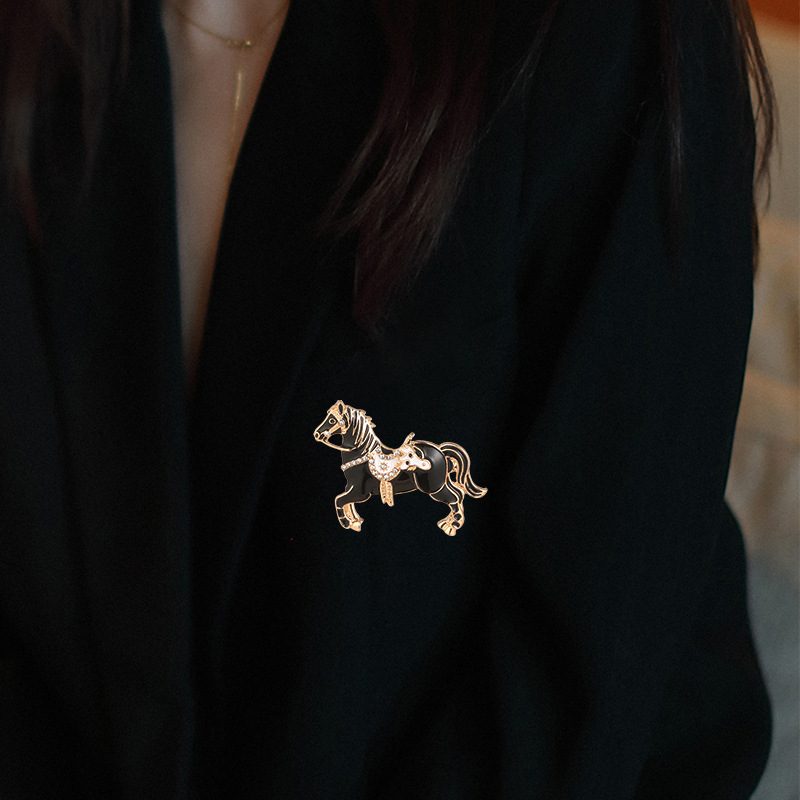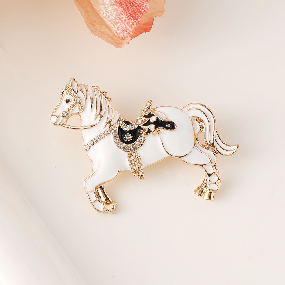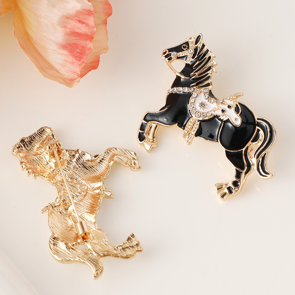 Acier inoxydable 304 broche, cheval, Placage de couleur d'or, unisexe & émail & avec strass, plus de couleurs à choisir, 46x37mm, Vendu par PC