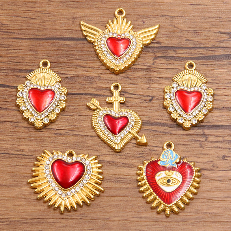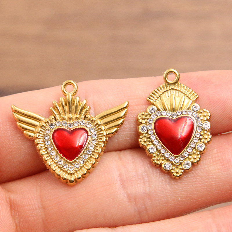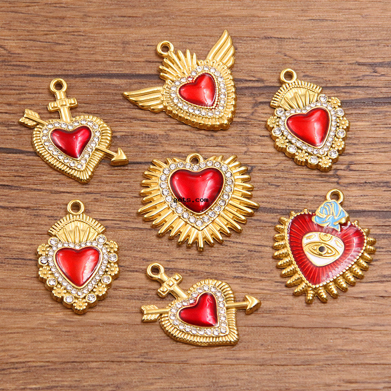 Acier inoxydable Coeur Pendentifs, Acier inoxydable 304, Placage, DIY & émail & avec strass, plus de couleurs à choisir, 10PC/sac, Vendu par sac