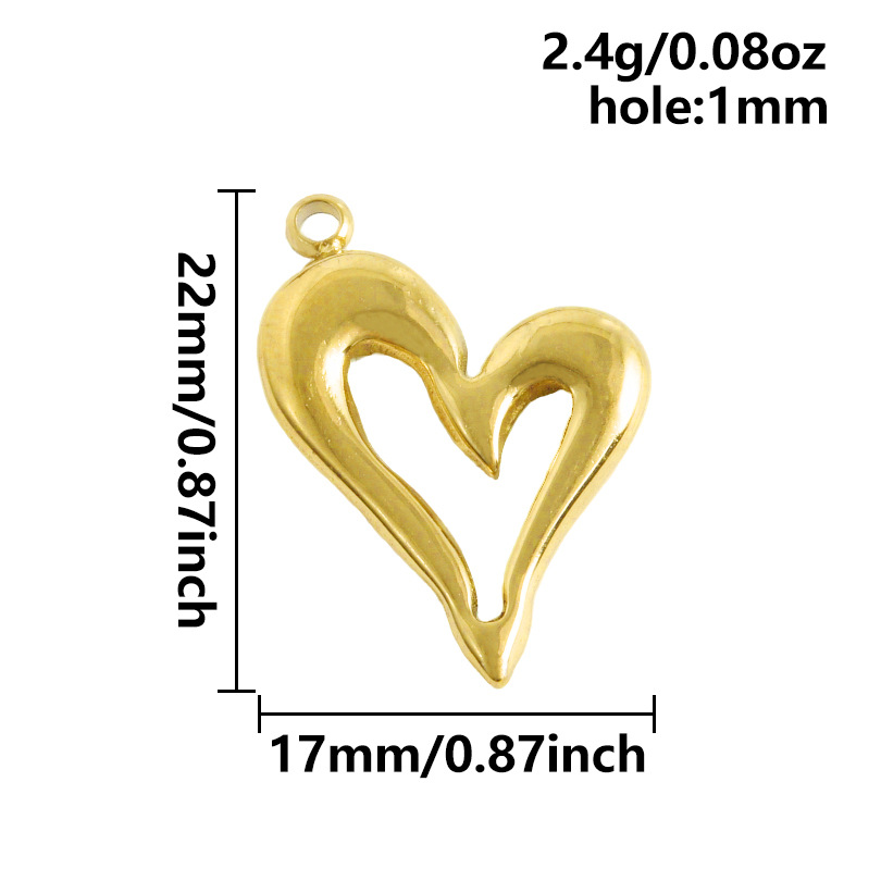 - Acier inoxydable Coeur Pendentifs, Acier inoxydable 304, Placage