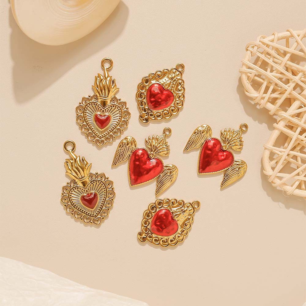 Acier inoxydable Coeur Pendentifs, Acier inoxydable 304, Placage de couleur d'or, DIY & émail, plus de couleurs à choisir, 10PC/sac, Vendu par sac
