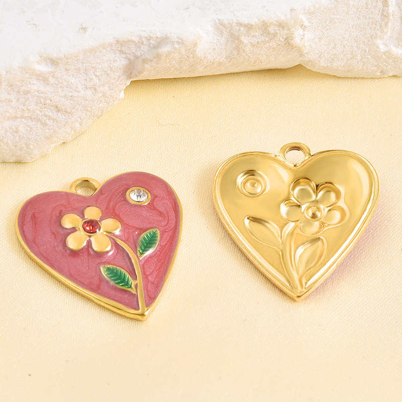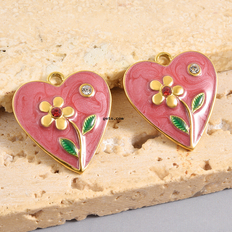 Acier inoxydable Coeur Pendentifs, Acier inoxydable 304, Placage de couleur d'or, DIY & émail & avec strass, couleurs mélangées, 10PC/sac, Vendu par sac