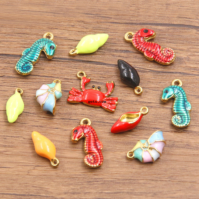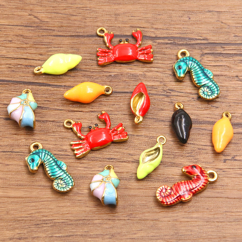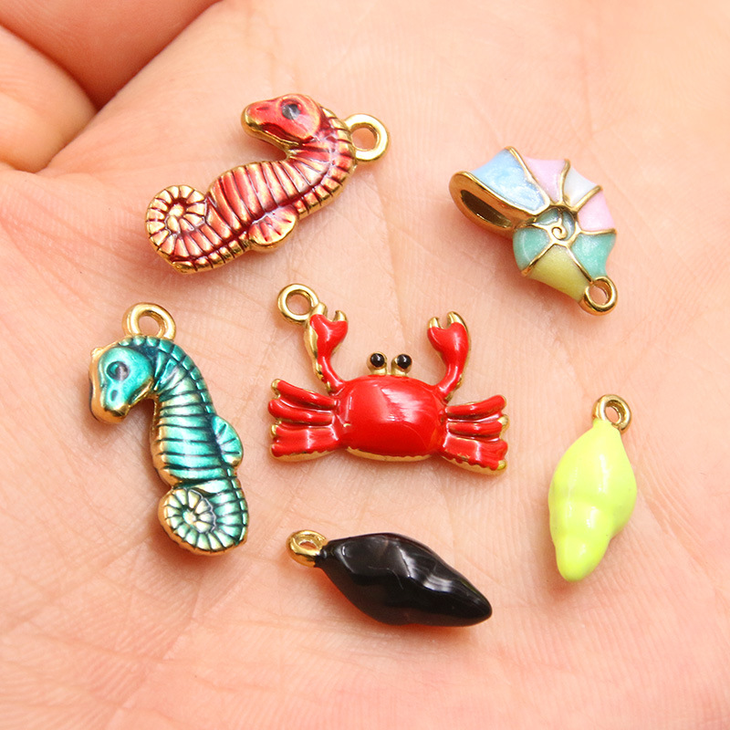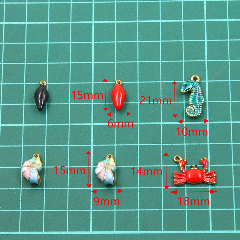 Blue double-sided seahorse 10X21mmRed double-sided seahorse 10X21mmDouble-sided conch 9X15mmCrab: 14X18mmBlack conch 6X15mmRed conch 6X15mmFluorescent green conch 6X15mmOrange conch 6X15mm