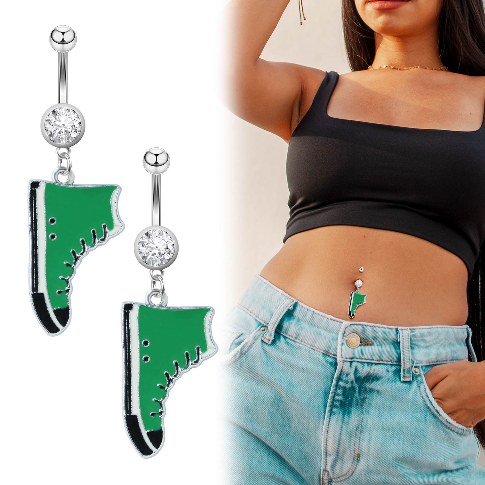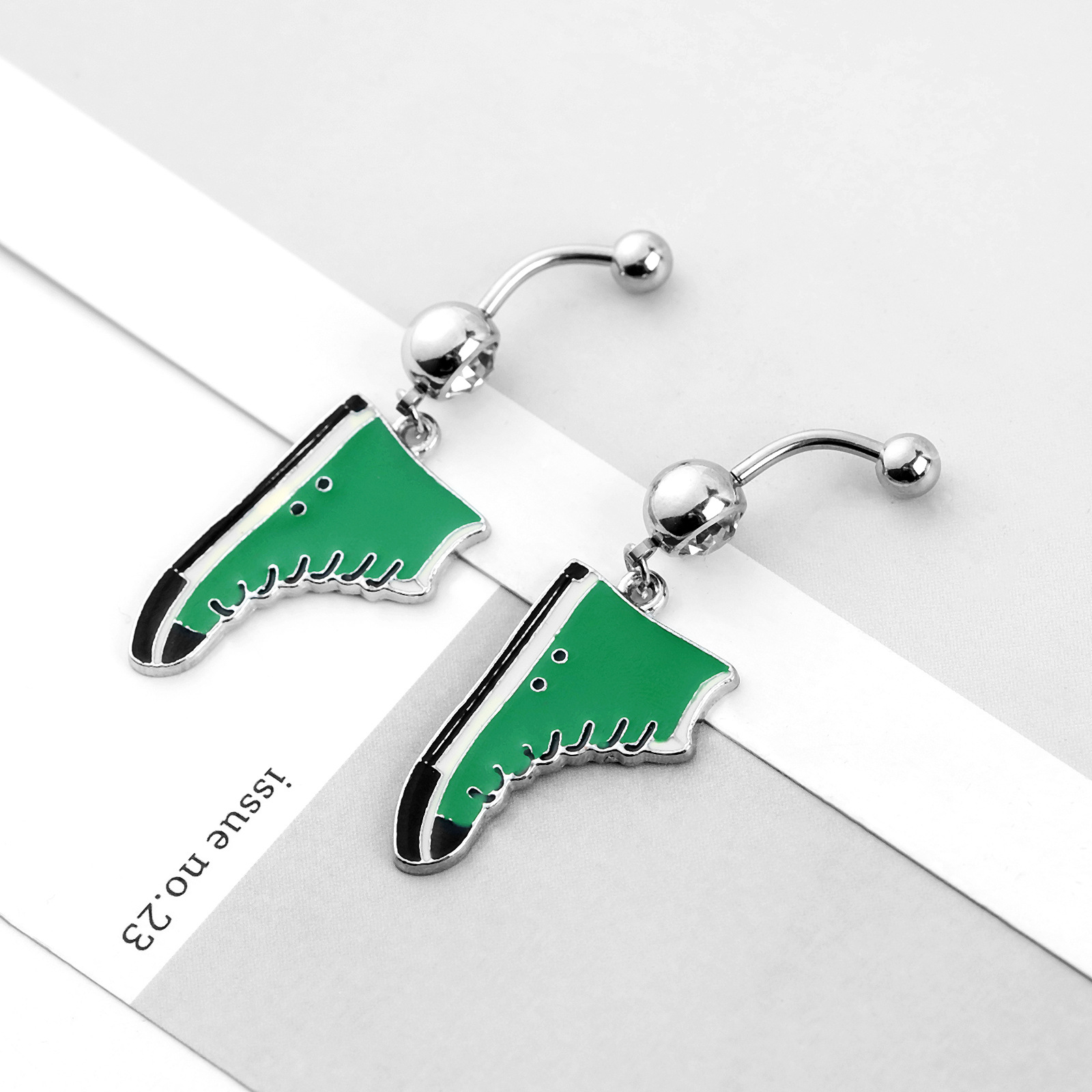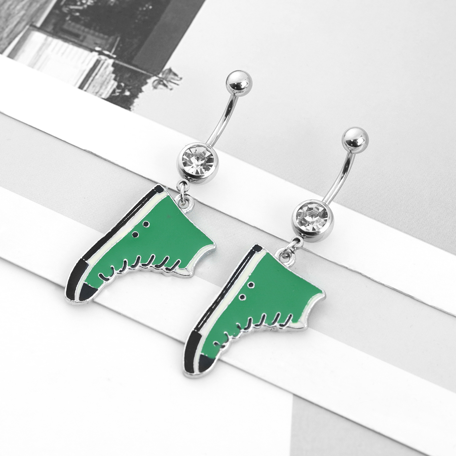 Acier inoxydable anneau de ventre, Acier inoxydable 316, chaussures, Placage de couleur argentée, bijoux de mode & émail & avec strass, couleurs mélangées, Vendu par PC
