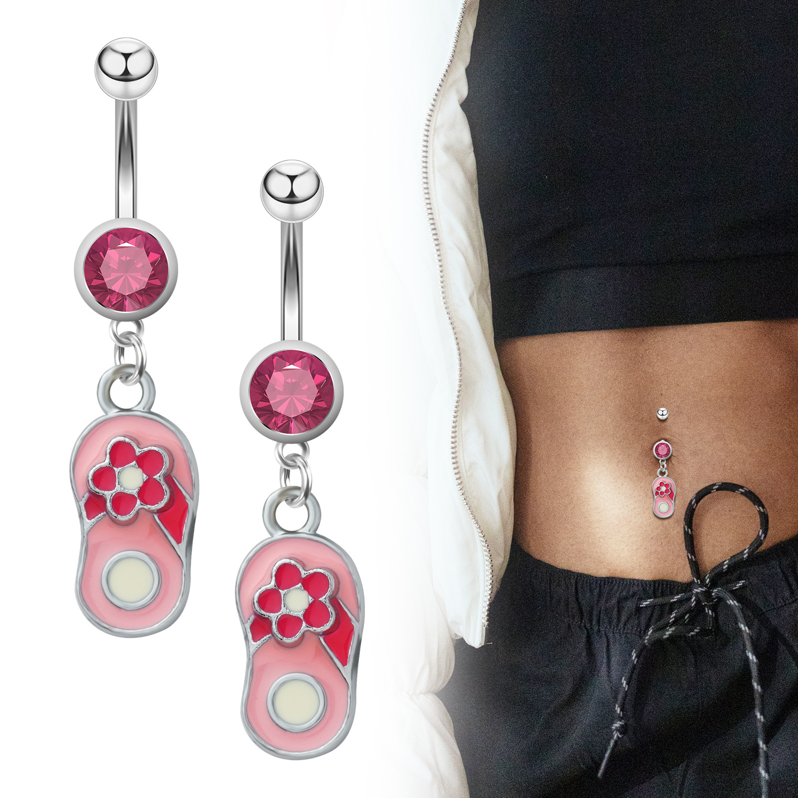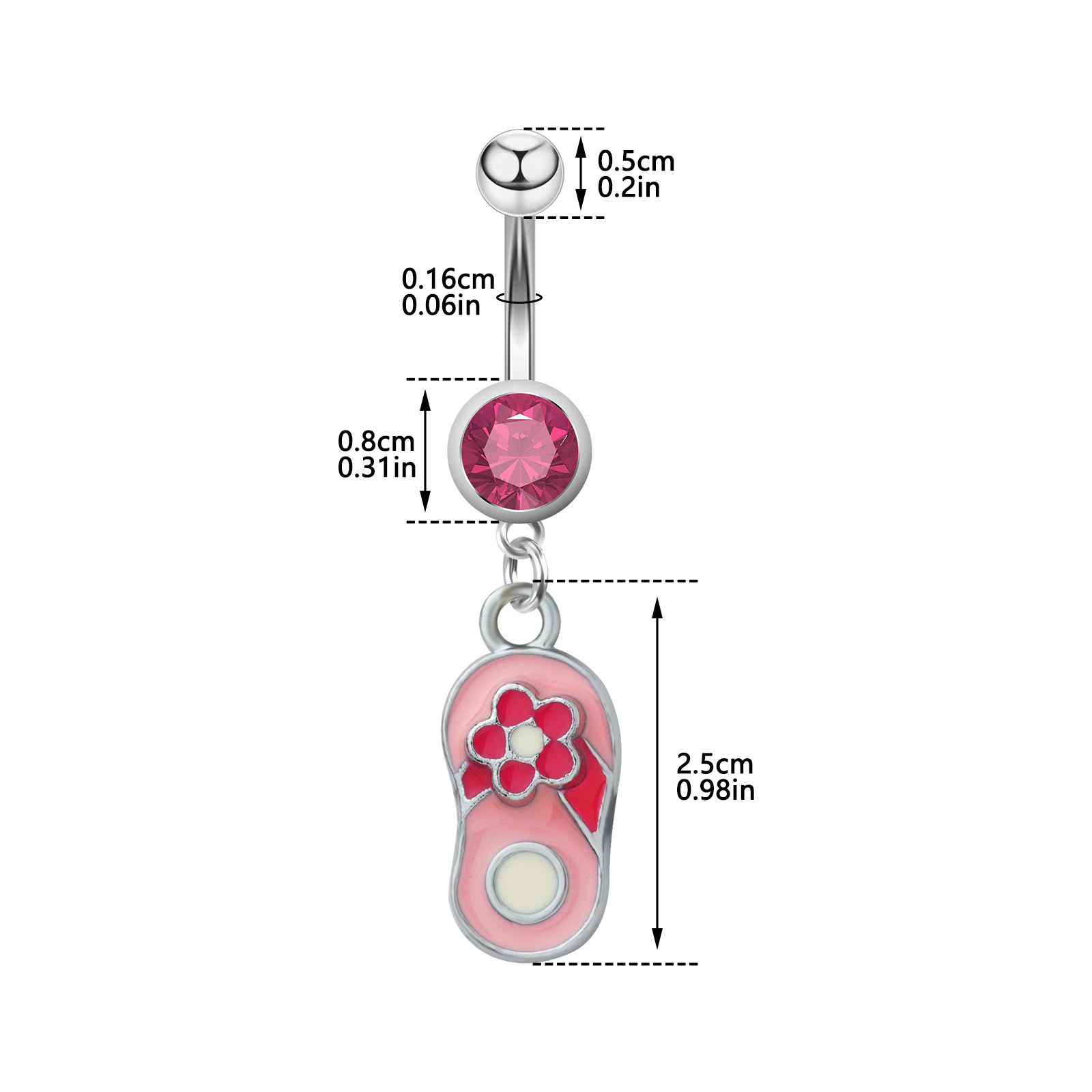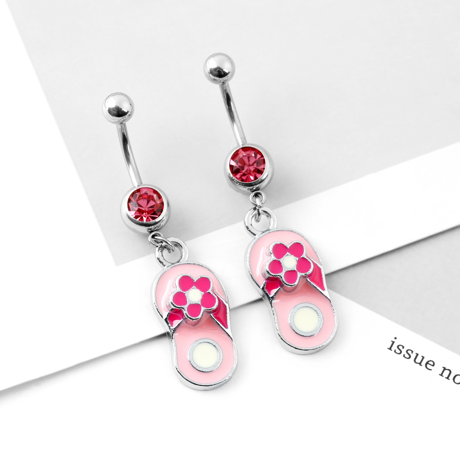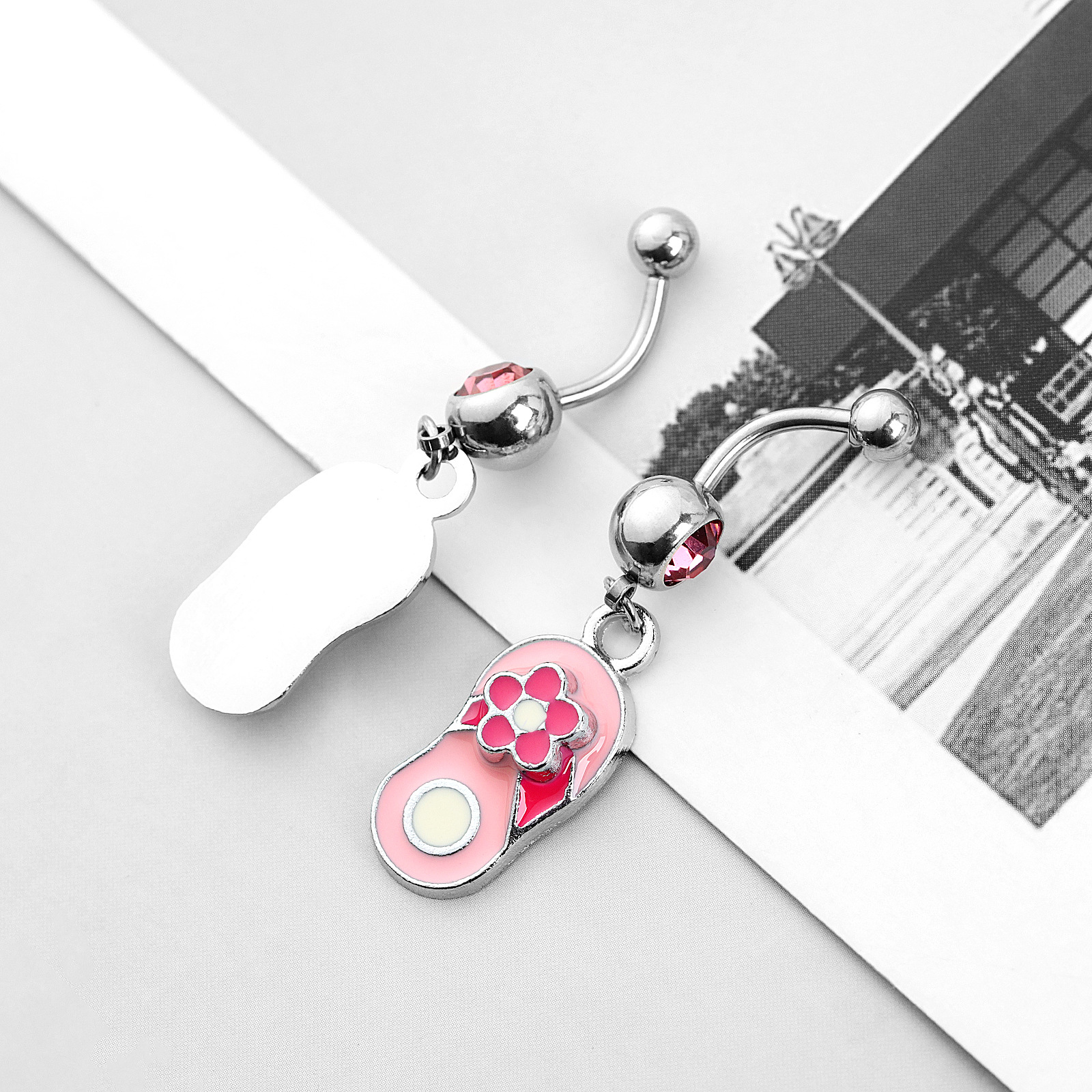 Acier inoxydable anneau de ventre, Acier inoxydable 316, avec alliage de zinc, Pantoufle, Placage de couleur argentée, bijoux de mode & émail & avec strass, couleurs mélangées, Vendu par PC