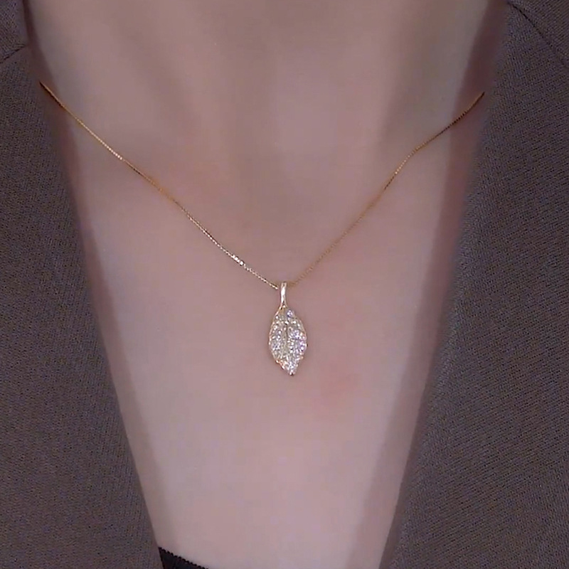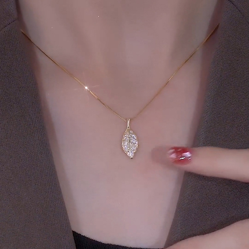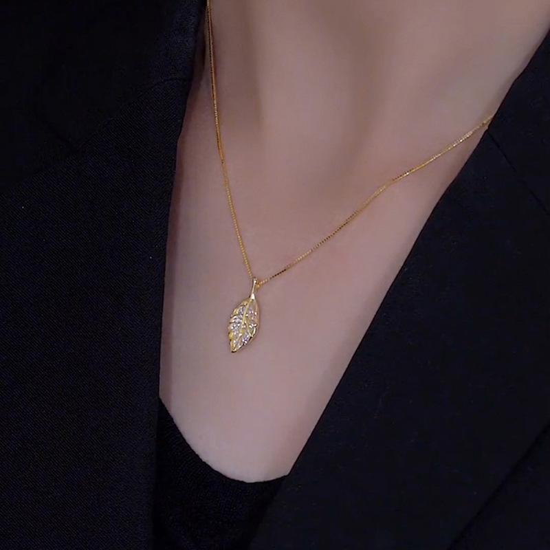 Acier titane collier, feuille, Placage de couleur d'or, pour femme & avec strass, Longueur:Environ 16 pouce, Vendu par PC