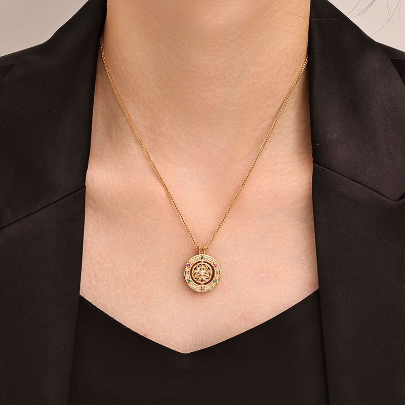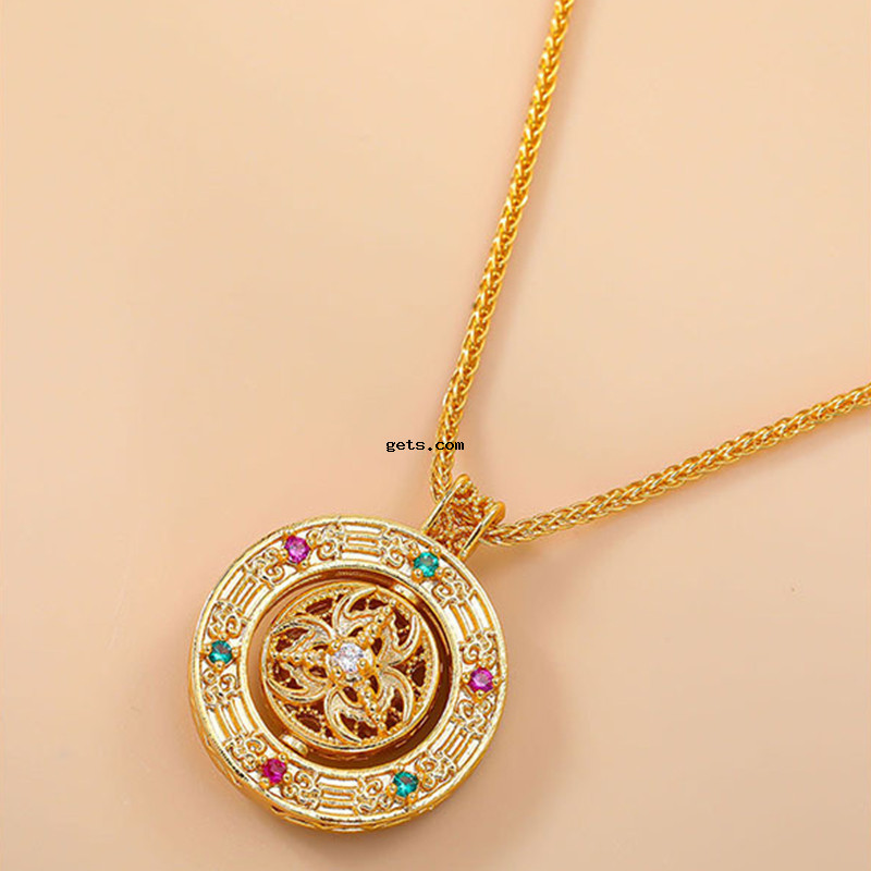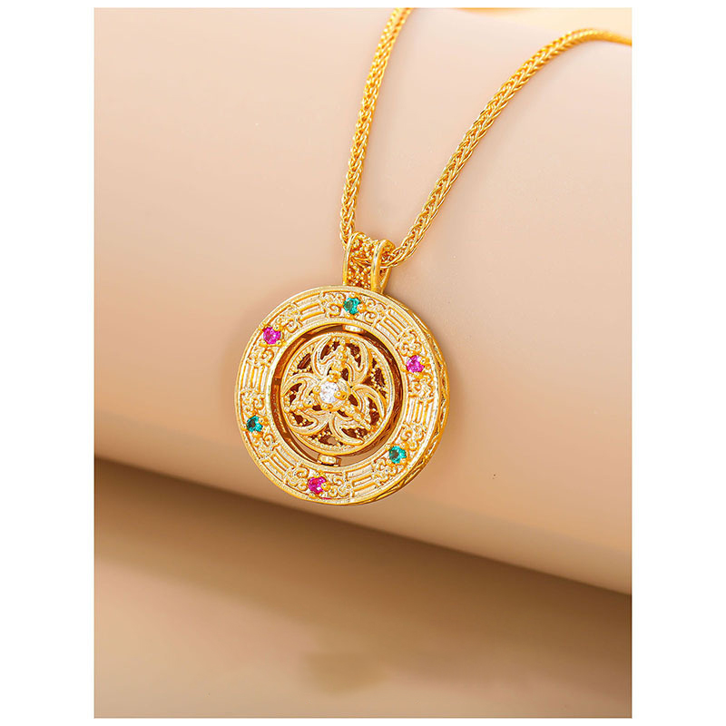 Alliage de cuivre collier, Plat rond, Placage de couleur d'or, pour femme & avec strass, Longueur:Environ 17 pouce, Vendu par PC