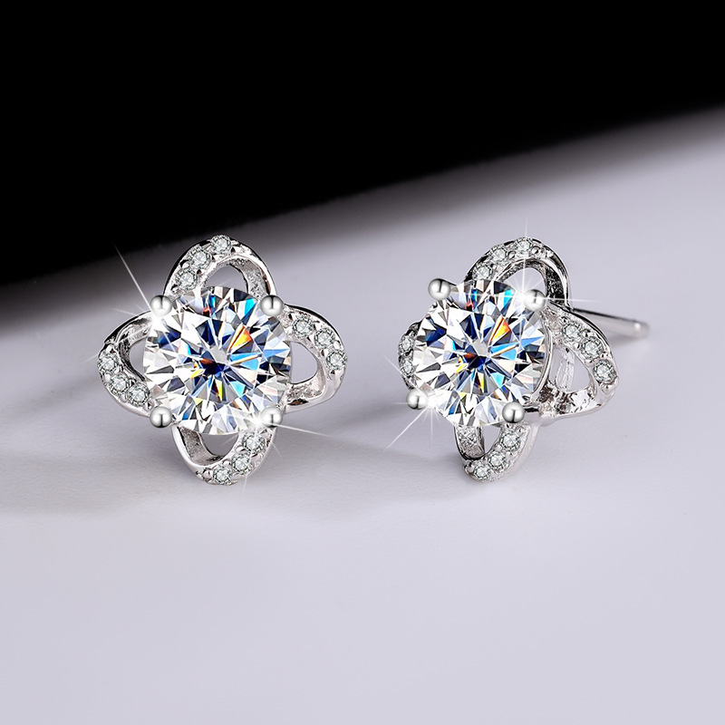 Argent sterling 925 boucle d oreille dormeuse, Trèfle à quatre feuilles, Plaqué de platine, différents matériaux pour le choix & pour femme, Vendu par paire