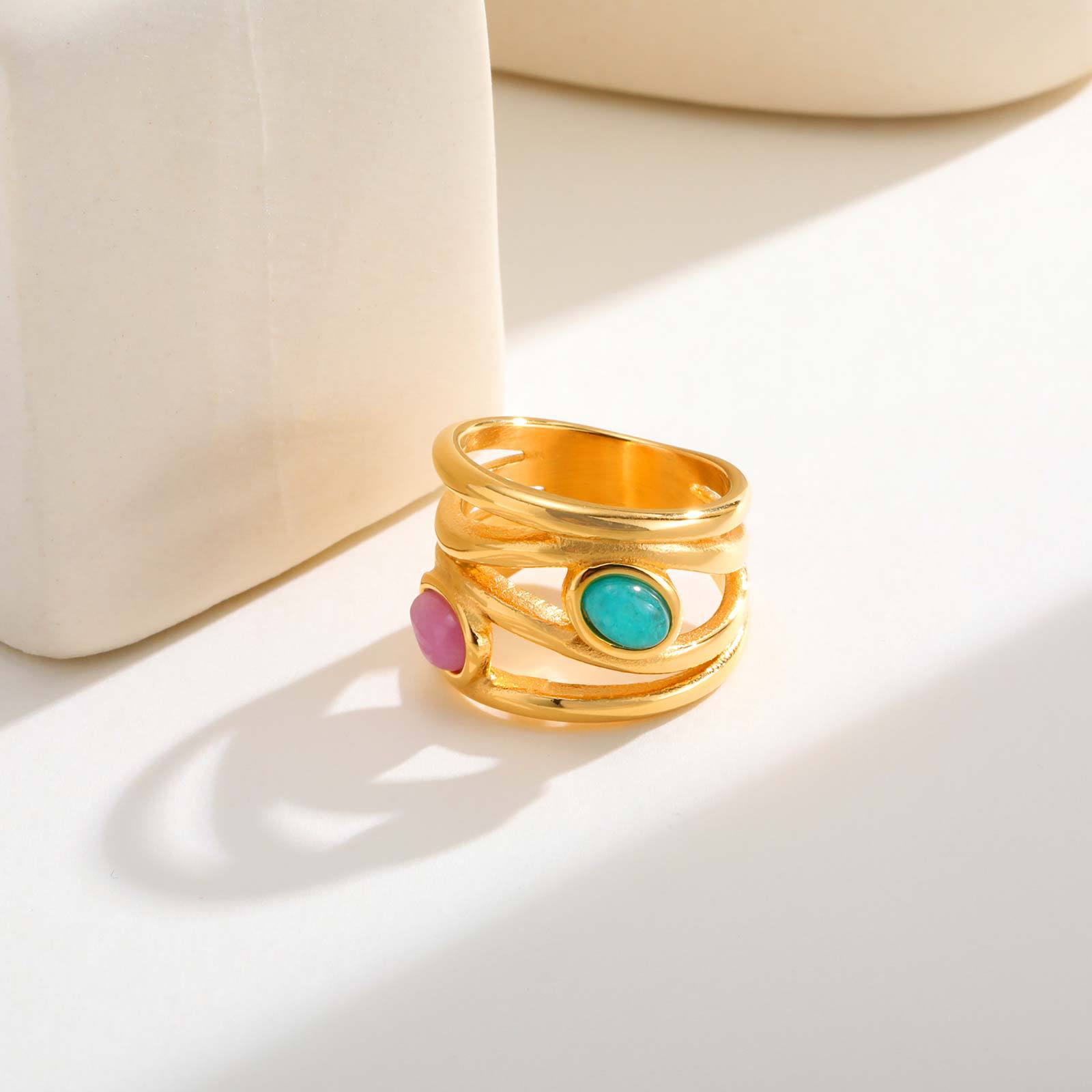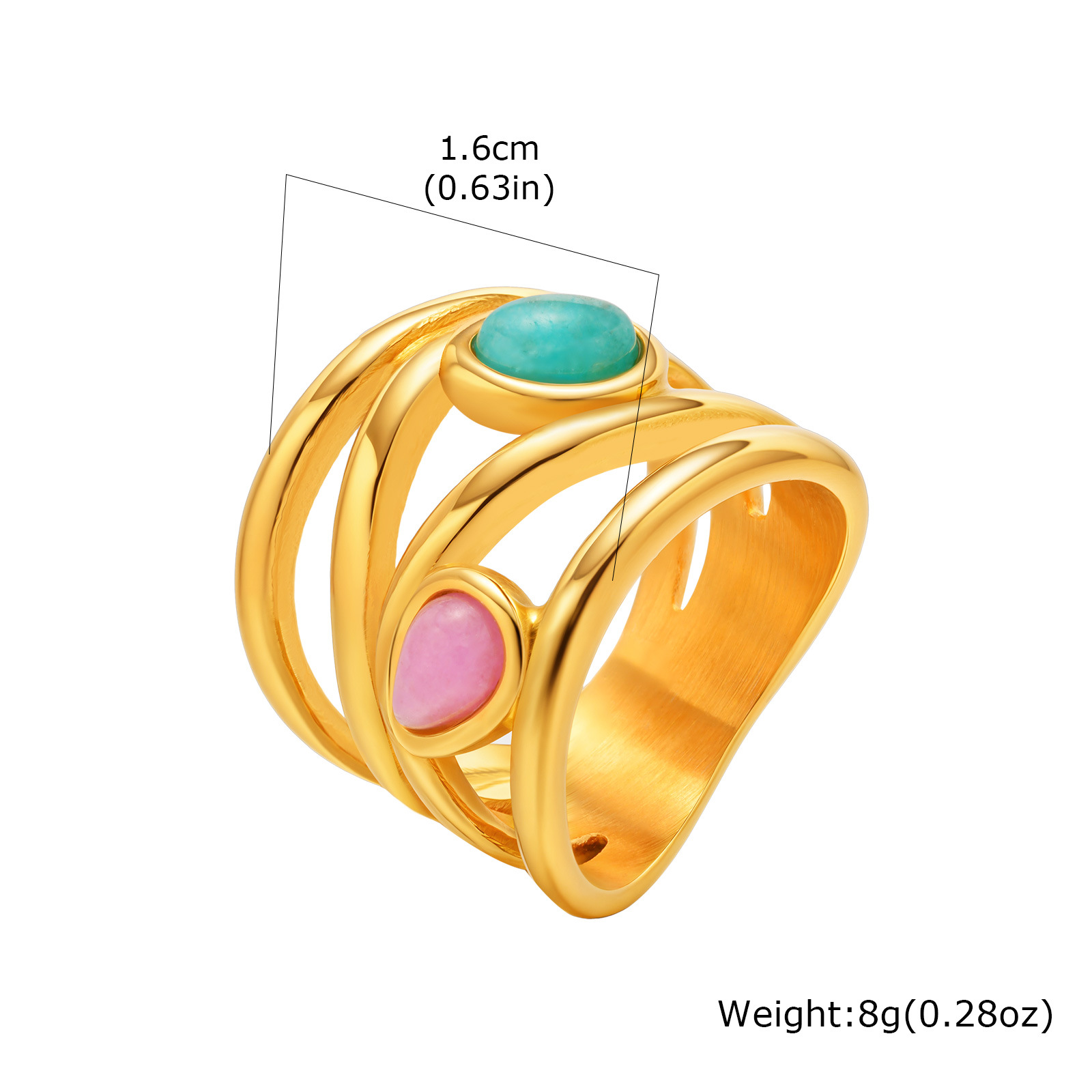 Bague en acier inoxydable, Acier inoxydable 304, avec Amazonite & Cristal naturel, Placage, multicouche & normes différentes pour le choix & pour femme, doré, Vendu par PC