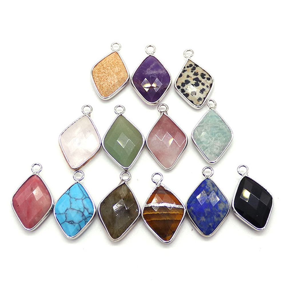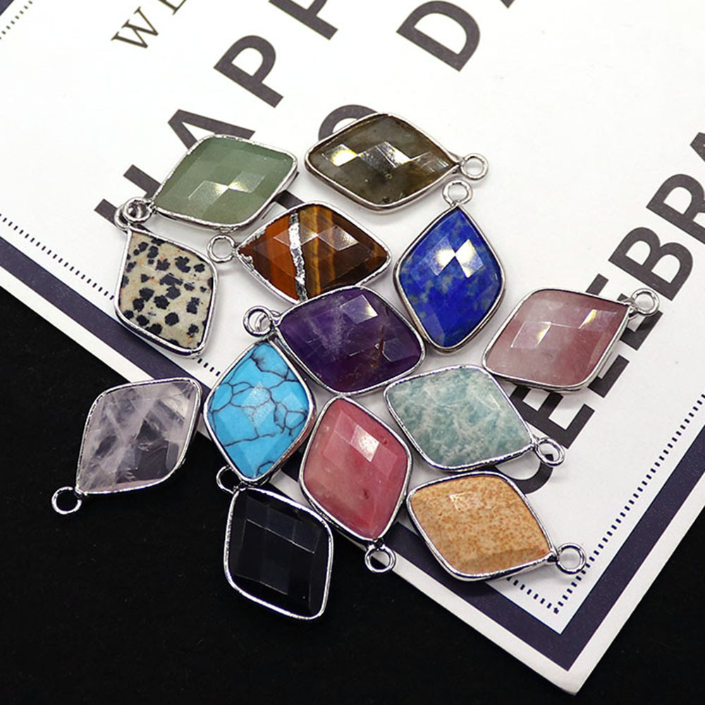 Bijoux Pendentifs en pierres gemmes, pierre gemme, avec laiton, Losange, DIY & différents matériaux pour le choix & facettes, 25x15mm, Vendu par PC