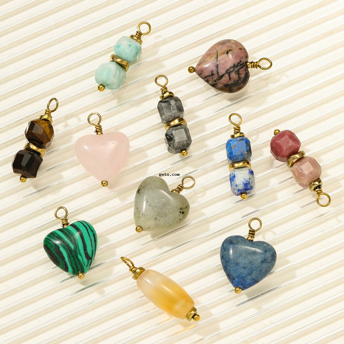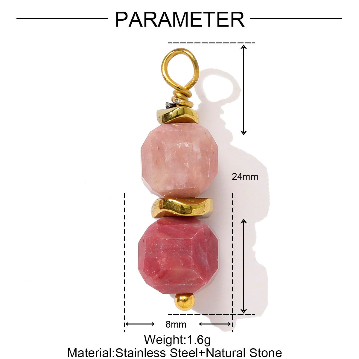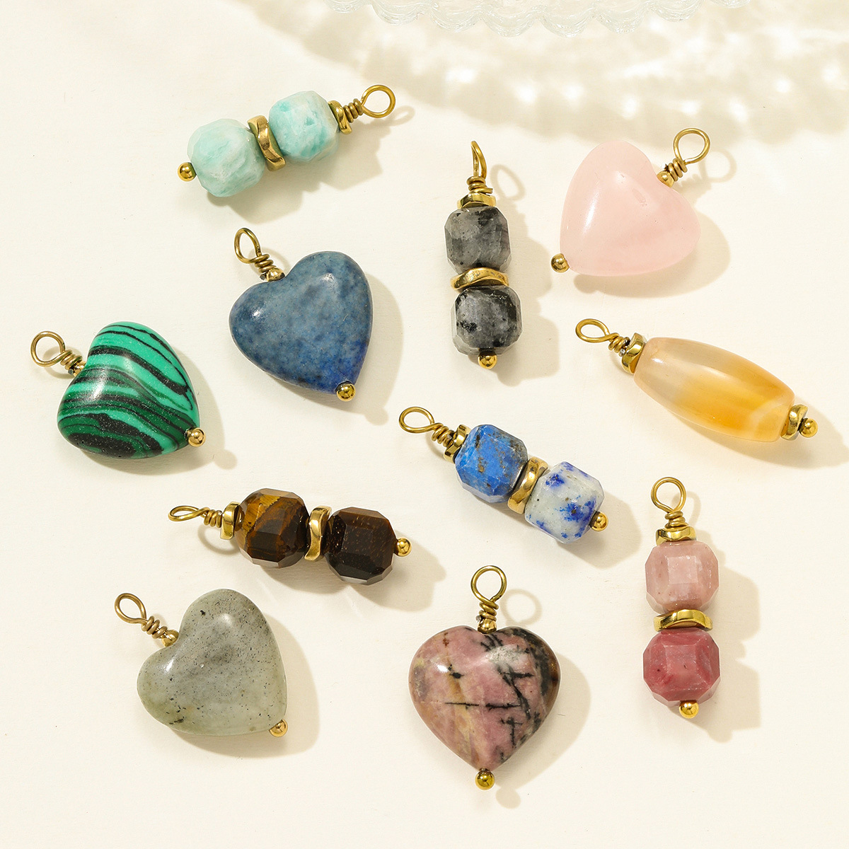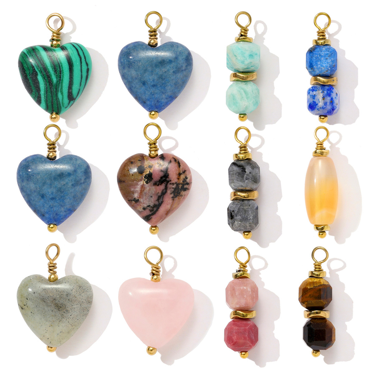 Bijoux Pendentifs en pierres gemmes, Acier inoxydable 304, avec Pierre naturelle, Placage de couleur d'or, DIY, plus de couleurs à choisir, 3PC/sac, Vendu par sac