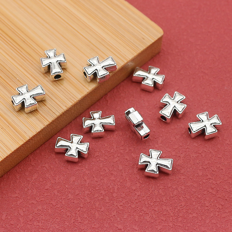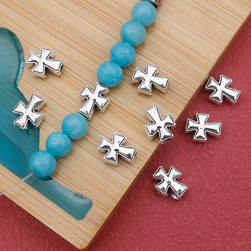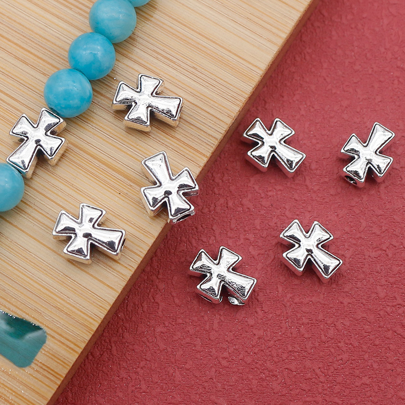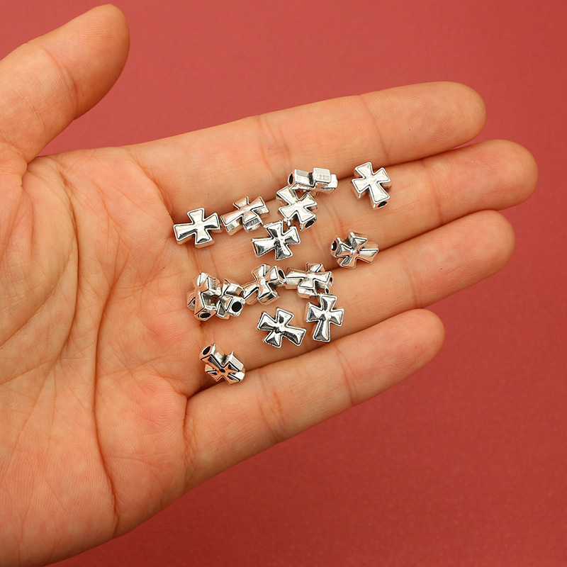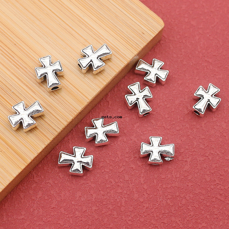Bijoux de perles en alliage de Zinc , croix, Plaqué de couleur d'argent, DIY, protéger l'environnement, sans nickel, plomb et cadmium, 7.50x9.50mm, Trou:Environ 2mm, Environ 100PC/sac, Vendu par sac