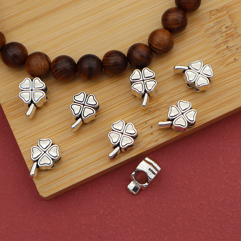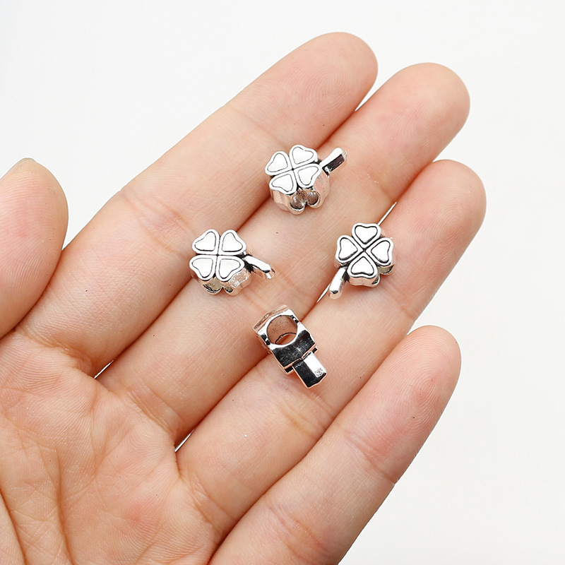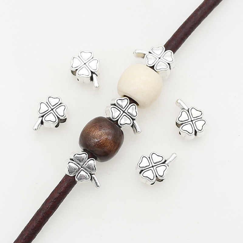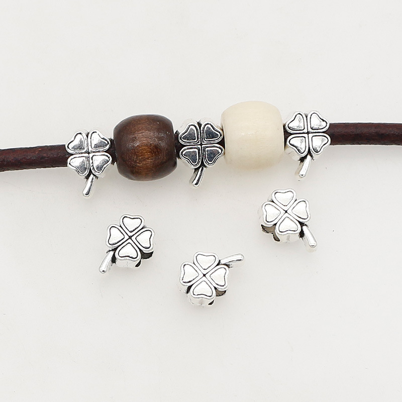 Bijoux de perles en alliage de Zinc , Trèfle à quatre feuilles, Placage de couleur argentée, DIY, argent, 13x8mm, Vendu par sac