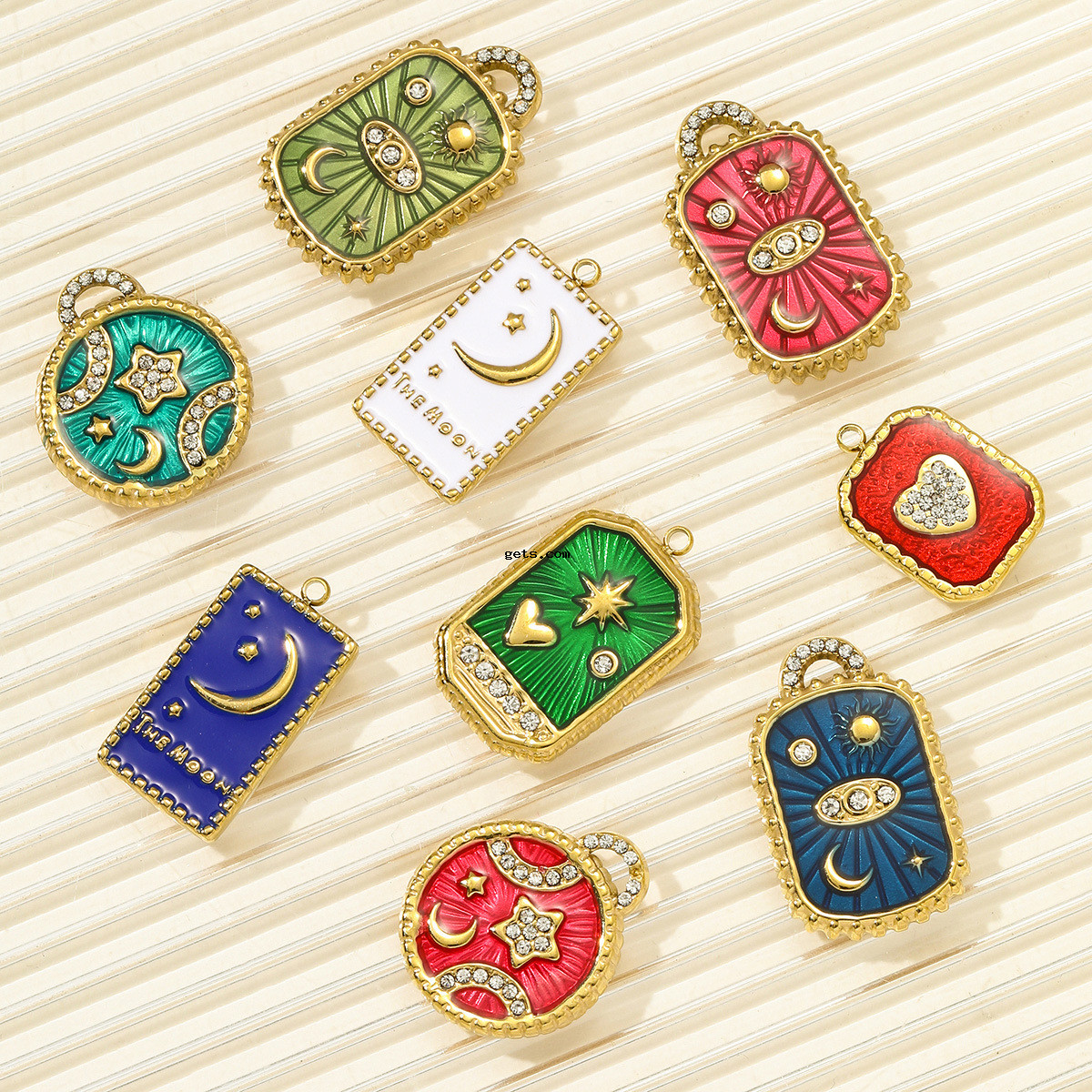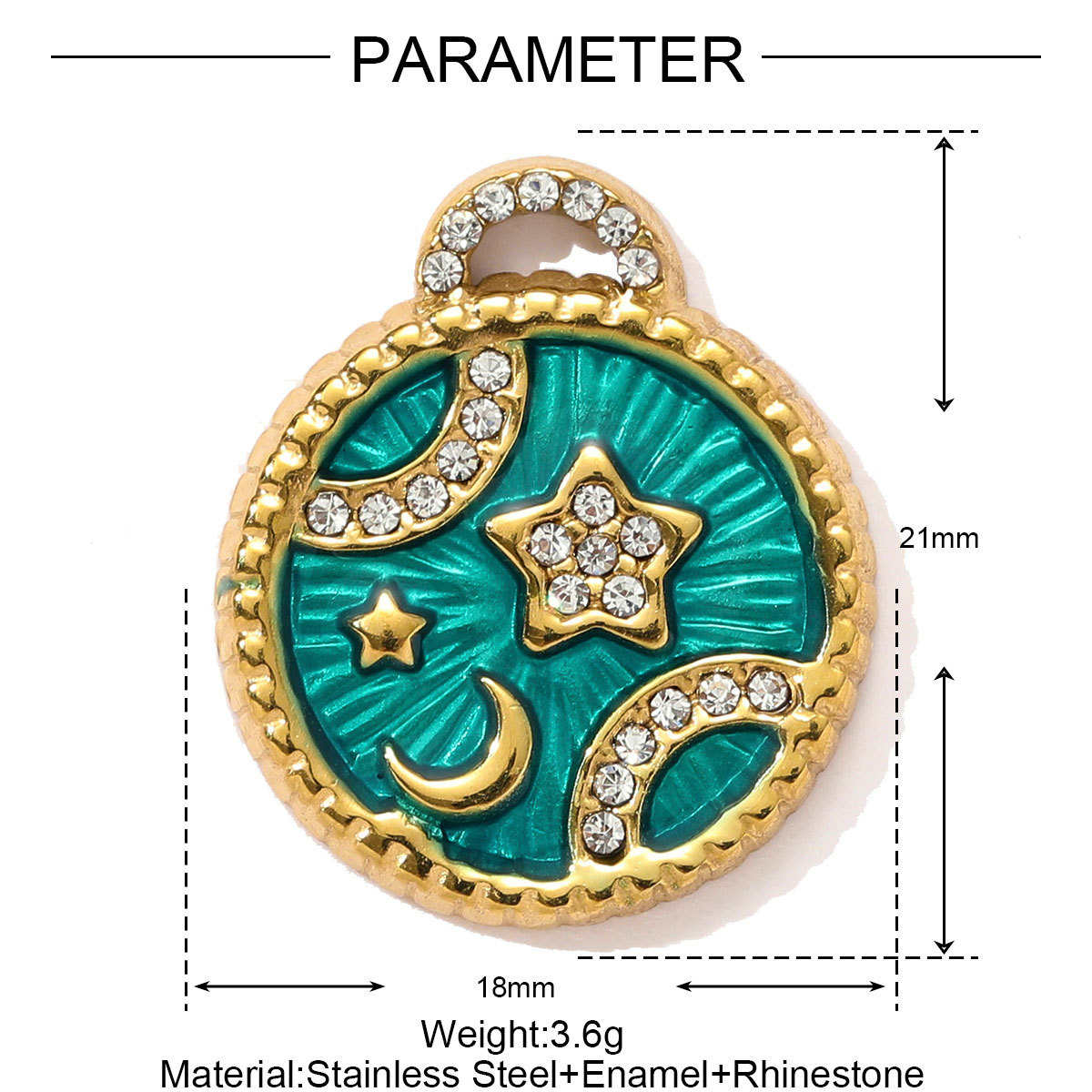 Bijoux pendentifs en acier inoxydable , Acier inoxydable 304, Placage de couleur d'or, DIY & émail & avec strass, plus de couleurs à choisir, 3PC/sac, Vendu par sac