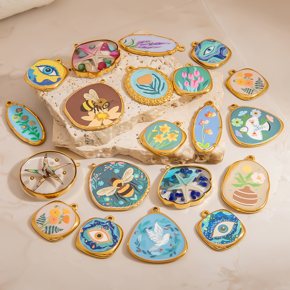 Bijoux pendentifs en acier inoxydable , Acier inoxydable 304, avec coquille d'ormeau, Placage de couleur d'or, DIY & autocollant époxyde & émail, plus de couleurs à choisir, Vendu par PC