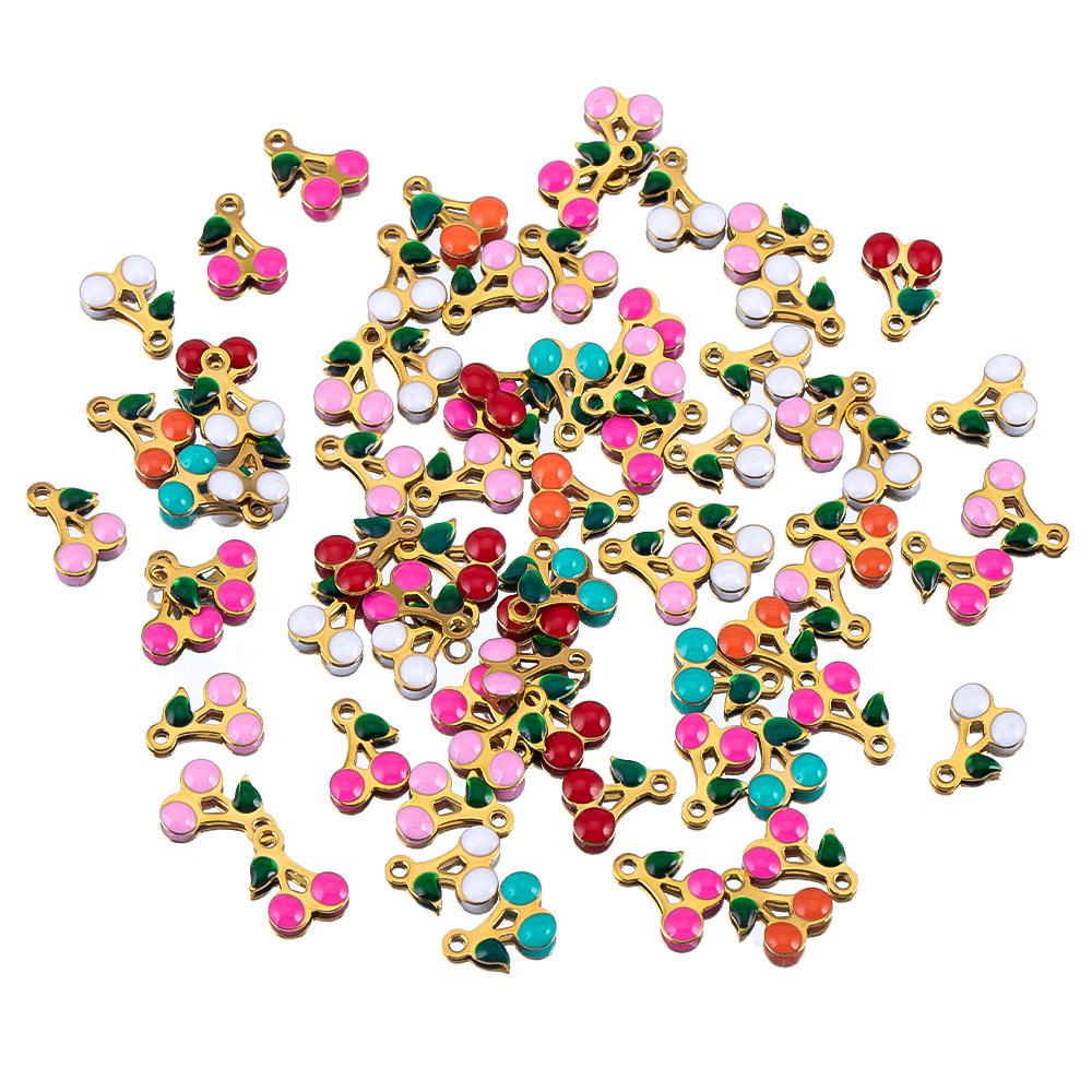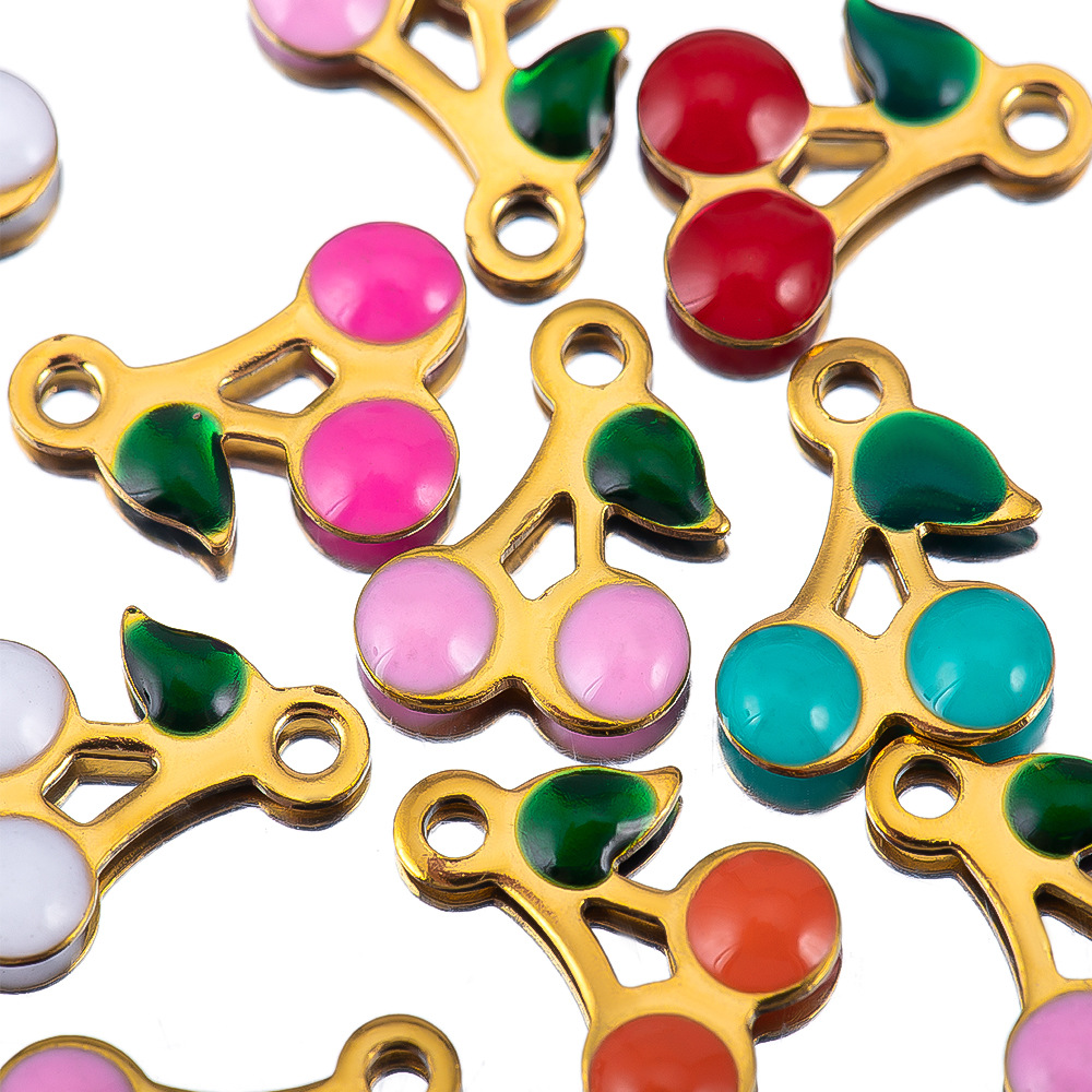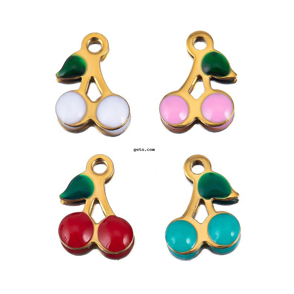 Bijoux pendentifs en acier inoxydable , Acier inoxydable 304, cerise, Placage, envoyé au hasard & DIY & émail, plus de couleurs à choisir, 5PC/sac, Vendu par sac